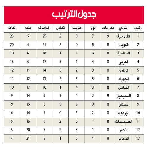 بالطبع هناك جوانب سلبية في هذه الجولة وأخرى إيجابية لكنها محدودة للغاية، وسنلقي الضوء في هذا التحليل على سلبيات وإيجابيات الأندية التي تتنافس على المقدمة.لاعبو القادسية يهدرونفرصاً بالجملةالقادسية "المتصدر" لم يقدم العرض المنتظر منه أمام كاظمة، ولم يحقق الأهم وهو الفوز، ولم ينجح في الثأر لنفسه من منافسه بعدما ودع كأس سمو ولي العهد بالخسارة 2-4 أمامه، وعانى بشدة من إهدار الفرص السهلة، ولو كان لاعبوه في مستواهم الطبيعي لنجحوا في تحقيق الفوز بعدد وافر من الأهداف. ويمكن القول إن هناك أكثر من لاعب في مقدمتهم عبدالعزيز المشعان يلعبون بشكل فردي لا يخدم الفريق، وهو ما يؤكد أن غياب بدر المطوع له تأثير سلبي لا يمكن إغفاله، كما أن اللاعبين خشوا بقوة الخسارة الثانية لهم على التوالي أمام المنافس، وهو ما وضعهم تحت ضغوط نفسية وعصبية.ولم ينجح المدرب الكرواتي داليبور في الارتقاء بالأصفر إلى الأفضل حتى الآن، وإن كنا نضع في الاعتبار الغيابات العديدة التي يعانيها الفريق لأسباب متفاوتة.مستوى غير مأمول لكاظمةتوقع الجميع أن يقدم كاظمة واحدا من أفضل عروضه أمام القادسية في ظل نجاحه بالتأهل للدور نصف النهائي لبطولة كأس سمو ولي العهد على حساب القادسية، لكن المستوى جاء هزيلا للغاية لا يرتقي لمستوى الطموح، ولولا مساعدة الصديق- المقصود الحكم يوسف الثويني- الذي أهدى ركلة جزاء وهمية للبرتقالي لخرج خاسرا من المباراة.ومن دون شك انقلبت الثقة بالنفس الزائدة عن الحد إلى غرور، وهي مسؤولية تقع على عاتق الجهازين الفني والإداري بسبب سوء اعداد اللاعبين وعدم تجهيزهم نفسيا للقاء.البرتقالي لم يقدم خلال اللقاء ما يستحق عليه التعادل، فلا جمل تكتيكية، ولا هجمات منظمة تدرب عليها الفريق، كما أن الأخطاء الدفاعية مازالت مستمرة ولم يتداركها ماتروك كما يؤكد عقب كل لقاء!الكويت مازال يتبعالأسلوب التجاريمن جهته، حقق الكويت المطلوب منه وهو الفوز على الفحيحيل بهدف من دون رد، ليقلص الفارق مع المتصدر "القادسية"، لكن ما يؤخذ على الجهاز الفني بقيادة المدرب محمد إبراهيم هو اتباعه أسلوبا تجاريا في تحقيق الفوز بالجولات الأخيرة واللعب بأقل مجهود ممكن، وفي حال استمر بنفس الأسلوب في الجولات المقبلة، فالنتائج قد تأتي عكسية وهو أمر متوقع في كرة القدم.ويعد اللاعب عبدالهادي خميس أحد أبرز الإيجابيات في الأبيض، لتحركات الفعالة، إلى جانب استغلاله الدائم لسرعته في الانطلاق من الخلف للأمام، وأهدافه المؤثرة في الفترة الأخيرة، ليعيد اللاعب اكتشاف نفسه مجددا.السالمية حقق الأهمواستعاد توازنهبدوره، نجح السالمية في استعادة توازنه وهو المكسب الأهم بالنسبة للجهاز الفني بقيادة المدرب الألماني رولف، فبعدما خسر من القادسية ثم تعادل مع الكويت، نجح في الفوز على خيطان بالثلاثة، وهو الأمر الذي يعتبره الجهاز الفني استعادة للثقة والعودة لطريق الانتصارات والدخول في أجواء المنافسة مقدما.السالمية واجه فريقا عنيدا في الشوط الأول، لذلك بحث عن الهدف الأول الذي تحقق في الدقيقة 44، بيد أن الشوط الثاني دان تماما للسماوي لعبا ونتيجة، وقدم فيه الفريق لمحات فنية جيدة، وذلك بعد التخلص من ضغوط النتيجة!العربي يحتاج لصانع ألعابأما العربي، فمازال يعاني بقوة، إذ يفتقد تماما للعقل المفكر والمدرب وصانع الألعاب القادر على إمداد المهاجمين بالتمريرات السحرية، وهو الدور الذي كان يقوم به محمد جراغ في الموسم الماضي، لذلك لم تظهر مخالب هجومية للأخضر على الإطلاق في مباراته مع النصر، وباختصار شديد تنتظر المدرب الصربي بوريس بونياك مهمة صعبة للغاية، تتمثل في ضرورة إعادة الفريق إلى مستواه السابق. وكان المحترف الجزائري أكرم جحينيط هو الأبرز في صفوف الأخضر سواء بالهدف الذي أحرزه، أو باللمحات الفنية العالية التي قدمها خلال اللقاء، ونال اللاعب رضا وإعجاب الجميع، ونال أيضا إعجاب بونياك الذي أكد أنه لاعب كبير ينتظر منه الكثير في الفترة المقبلة.العاشرة 25 
