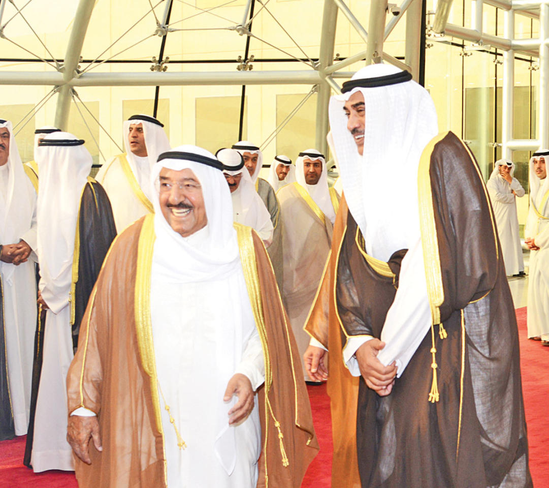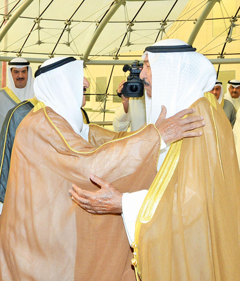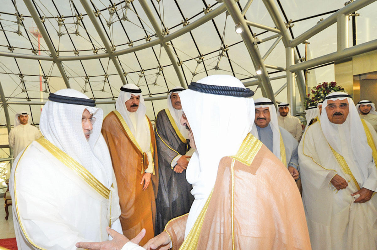 وكان في استقبال سموه على ارض المطار سمو ولي العهد الشيخ نواف الاحمد، ورئيس مجلس الامة مرزوق الغانم، وكبار الشيوخ، وسمو الشيخ ناصر المحمد، ووزير شؤون الديوان الاميري الشيخ ناصر صباح الاحمد، ورئيس مجلس الوزراء بالانابة وزير الخارجية الشيخ صباح الخالد، ونائب رئيس مجلس الوزراء وزير الداخلية الشيخ محمد الخالد، ونائب رئيس مجلس الوزراء وزير الدفاع الشيخ خالد الجراح، ونائب رئيس مجلس الوزراء وزير المالية انس الصالح، والوزراء وكبار المسؤولين بالدولة.