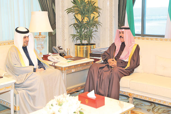 استقبل سمو نائب الأمير وولي العهد الشيخ نواف الأحمد بقصر السيف، صباح أمس، رئيس مجلس الوزراء بالإنابة وزير الخارجية الشيخ صباح الخالد.واستقبل سموه نائب رئيس مجلس الوزراء وزير الداخلية الشيخ محمد الخالد، ثم نائب رئيس مجلس الوزراء وزير الدفاع الشيخ خالد الجراح.