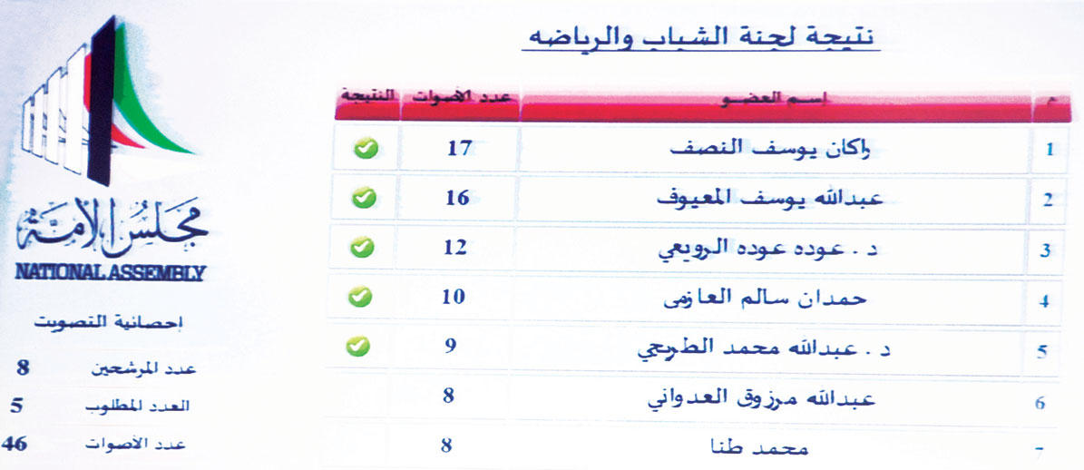 وتوقع النائب د. عبدالرحمن الجيران، في تصريح لـ"الجريدة"، أن تكون هناك تغييرات كبيرة في انتخابات مناصب المجلس ولجانه الدائمة، بسبب الاحداث السياسية والامنية الاخيرة التي طرأت على البلاد، وأثرت تأثيرا مباشرا وغير مباشر على اداء وتصريحات وتوجهات النواب.وتؤكد مصادر حكومية لـ"الجريدة" في هذ ا الاطار ان الحكومة ستدخل جلسة انتخابات مناصب مكتب المجلس ولجانه بقوة من اجل دعم النواب المؤيدين لها ليكون لهم اكبر تمثيل في اللجان المهمة مثل المالية والداخلية والدفاع والخارجية والتشريعية والاموال العامة والتعليمية، اذ يتوقع ان تكرر الحكومة السيناريو السابق بإقصاء بعض الاسماء التي ترى فيها نفس التأزيم او من توجد عليهم مآخذ قضائية أو ركبوا الموجة خلال الاحداث التي طرأت على البلاد ابتداء من تفجير مسجد الامام الصادق، مروراً بخلية العبدلي، وصولا الى قضية العجز بالميزانية والاتفاقية الامنية.ومن المنتظر، كما قال مصدر برلماني، ان تؤثر تلك الاحداث على انتخابات اللجان، وترسم خارطتها للمرحلة المقبلة.وبعيدا عن سخونة اجواء التنافس في اللجان البرلمانية، هناك لجان ستحسم بالتزكية كما هي الحال مع بداية كل دور انعقاد، مثل العرائض والشكاوى، والمرافق العامة، والميزانيات، حيث يتم الاتفاق على حسمها قبل الجلسة الافتتاحية. اما اللجان الاخرى مثل المالية والتشريعية والداخلية والدفاع والخارجية والاموال العامة فسيكون الصراع على الفوز بعضويتها على أشده. وبالنظر سريعا الى عضوية اللجان نلاحظ جلياً ان المجلس والحكومة دعما معاً نواب التيار الوطني والاخرين المؤيدين للحكومة، حيث نال هؤلاء نصيب الاسد من مقاعد اللجان الدائمة والمؤقتة، بينما كان التمثيل الاقل للاسلاميين الذين تلقوا اول ضربة لهم برفض لجنة الظواهر السلبية وإقصاء أغلبهم عن اللجان الدائمة المهمة، وكان أبرز النواب الذين تكررت اسماؤهم في اكثر من لجنة حمد الهرشاني ومنصور الظفيري وسيف العازمي وماجد موسى وخليل الصالح وعبدالله المعيوف وفيصل الكندري وراكان النصف وعبدالحميد دشتي، بينما كان ابرز الخاسرين من ترشحوا لاكثر من لجنة دائمة وأقصوا منها مثل النائبين صالح عاشور الذي لم يحظ الا بعضوية لجنة دائمة واحدة، وحمدان العازمي الذي لم ينل عضوية اي لجنة.وتجمع المصادر البرلمانية ان عدد النواب الذين سيقصون من اللجان سيزداد في دور الانعقاد الجديد، بعد ان فرضت الاحداث الامنية والمالية الاخيرة نفسها لاعادة ترتيب هذه اللجان بالطريقة التي تخدم الحكومة ومجلس الامة معا في ظل الاحداث المتسارعة.وعلى صعيد متصل، أوضحت المصادر ان المجلس والحكومة سيتفقان على ضرورة وجود نواب يساهمون في تمرير التشريعات والقوانين التي تتفق عليها السلطتان، وتتعلق بالقضايا الامنية التي ستتولاها لجنة الداخلية والدفاع والقوانين الاقتصادية المنتظرة التي سترفعها الحكومة الى المجلس قريبا مثل الصكوك والسجل العقاري والمرسوم وغيرها من قوانين يتطلع ان تساهم في علاج العجز المالي في الميزانية.اما في ما يتعلق بلجنة الشؤون التشريعية، فترى المصادر ان التغيير فيها سيكون متوقعا خاصة مع وجود قوانين يجب ان تمر مثل استقلال القضاء والاتفاقية الامنية المطلوب حسمها دستورياً، لذلك من المنتظر ان تكون هناك تغييرات كبيرة في هذه اللجنة نظرا لحاجة المجلس والحكومة لذلك.وبشأن اللجنة التعليمية، فستكون امام اختبار صعب بمواجهتها لقانون الاعلام الالكتروني.وعودة الى مناصب المجلس، من المتوقع ان يشهد منصب امين السر بقاء عادل الخرافي، بينما يتوقع ان يطرأ تغيير على منصب المراقب ترجمة للاحداث التي جرت مؤخرا.وأخيراً، فإن الاحداث التي تمر بها البلاد من قضايا أمنية وسياسية واقتصادية تحتم على مجلس الأمة رسم سياسة لجانه البرلمانية لتواكب ما يصبو اليه ولتلبية المتطلبات التشريعية التي سيتم الاتفاق عليها.