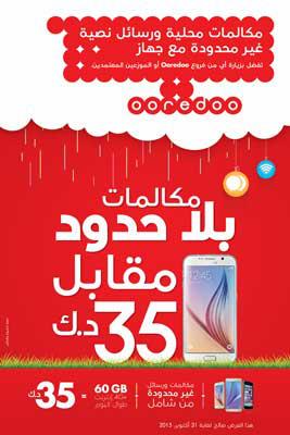 أطلقت Ooredoo الكويت، إحدى شركات مجموعة "Ooredoo العالمية للاتصالات"، أحدث عروض "شامل"، تقدم من خلالها لعملاء الدفع الآجل مكالمات ورسائل نصية بلا حدود و60 غيغابايت من الإنترنت 4G+، إلى جانب اختيارهم من الهواتف الذكية، مقابل مبلغ شهري يبلغ 35 دينارا فقط، ويتوفر العرض من الآن حتى 31 أكتوبر الجاري.يمكن لعملاء Ooredoo الراغبين في الحصول على هذا العرض الاختيار بين مجموعة من أحدث أجهزة الهواتف الذكية iPhone 6 وiPhone 6 Plus وSamsung S6 وSamsung S6 Edge وSamsung S6 Edge Plus وSamsung Note 5 إلى جانب المميزات العديدة الأخرى ضمن أحدث باقات "شامل" الفريدة من Ooredoo.