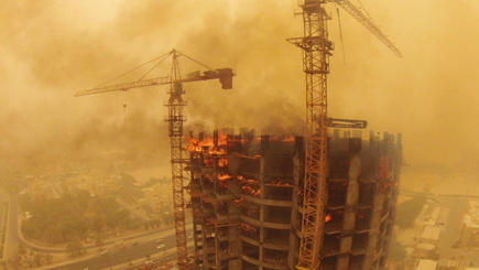 حريق هائل في مبنى قيد الإنشاء بمنطقة الشعب البحري