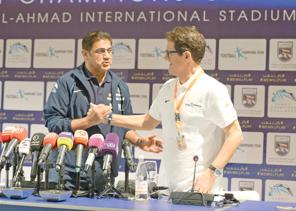 وستكون الكويت اليوم بؤرة اهتمام العالم أجمع، في حدث لا يتكرر كثيرا بالملاعب العربية والخليجية، بوجود نخبة من ألمع اللاعبين الذين مروا في عالم الساحرة المستديرة على أرض استاد جابر، الذي اجتاز كل الفحوصات من أكبر المكاتب الاستشارية في العالم، ليزيح عن كاهله ما طاله من اشاعات كادت تجعله في طي النسيان. وطال الانتظار من عشاق الرياضة الكويتية لخوض منافسات كروية ورياضية على أرض استاد جابر، الذي يحمل اسماً عزيزاً وغالياً على قلوب الجميع في الكويت والعالم أجمع، هو المغفور له بإذن الله سمو الأمير الراحل الشيخ جابر الأحمد. ووضع حجر الاساس لبناء الاستاد عام 2005 على مساحة اجمالية تصل إلى 400 ألف متر مربع، ويضم إلى جانب ملعب كرة القدم، مضمارا لألعاب القوى وحوض سباحة وغرفا للاجتماعات وملعبين تدريب، وتسع مدرجاته لنحو 60 ألف متفرج.جاهزية الأساطيروفي سياق المباراة، اطمأن مدرب الأساطير كابيلو على جاهزية لاعبيه، من خلال الاطلاع على آخر مشاركاتهم في المباريات الودية، وتلقى ردودا مطمئنة على جاهزيتهم لمواجهة الليلة. وقال أسطورة دفاع ميلان الساندرو نيستا إنه سعيد بالعودة مجدداً إلى الكويت، التي ووصفها بالدولة الرائعة، وشعبها بالودود، متمنيا العودة على الدوام للكويت. بدوره، أكد أسطورة كرة القدم البرتغالية النجم السابق لبرشلونة وريال مدريد الإسبانيين لويس فيغو سعادته لوجوده في الكويت بافتتاح استاد جابر، معتبرا هذا اليوم تاريخياً، والكويت موطنا له.وقال فيغو: "هذه المرة الرابعة التي أزور فيها الكويت، وتكرار الدعوات يوضح اهتمام هذه الدولة بالأحداث الكروية"، متمنيا ان يمتلئ الملعب اليوم بالجماهير لأنه حدث تاريخي. وكشف عن دعمه لمساندة مرشح الأتحاد الأوروبي لكرة القدم السويسري انفانتينو في انتخابات الفيفا، لأنه الوحيد الذي يستطيع احداث التغييرات المطلوبة للإصلاح داخل الهيئة المنظمة لكرة القدم في العالم.الجنرال يقود النجوموعلى استاد نادي الكويت، قاد المدرب محمد إبراهيم حصة تدريب للاعبين المختارين، ووجد الجميع بمن فيهم لاعب العربي أحمد إبراهيم، وهو آخر اللاعبين المنضمين لتوليفة النجوم المحليين، كما باشر النجم بدر المطوع التدريبات بعد عودته من الاردن للمشاركة في هذا الحدث التاريخي، وحرص إبراهيم على توضيح الخطوط العريضة لمواجهة لاعبين هم الأفضل في العالم، ويحملون خبرة وأسرار كرة القدم.من جانبه، أكد لاعب العربي محمد جراغ أن فيغو مثله الأعلى ومن الرائع مواجهته، معتبرا نفسه وبقية زملائه محظوظين لمواجهة هذه الكوكية من اللاعبين.بدوره، قال فهد الأنصاري، وهو قائد الكويت في المباراة، إنه سعيد بالمواجهة التاريخية، متمنيا أن تسعد جماهير الكويت بالمباراة.«الصحة» توفر طائرة هليكوبتر و22 سيارة إسعاف و8 عياداتأكد وكيل وزارة الصحة المساعد للخدمات الطبية المساندة د. جمال الحربي، جاهزية الوزارة لتغطية الافتتاح، مبينا أن الوزارة خصصت 22 سيارة إسعاف وسيارتي إسعاف عناية مركزة، و8 عيادات كاملة التجهيزات، وعدد من الباجيات والمسعفين الجوالة، إضافة إلى وجود طائرة هليكوبتر ضمن خدمة الإسعاف الجوي.وأوضح أن المستشفيات التي ستكون معنية بتغطية الحدث، في حال الطوارئ، هي "الفروانية" و"الصباح"، في حين ستكون مستشفيات "الجهراء، مبارك الكبير، الأميري، والعدان" مساندة.ولفت الحربي إلى أن إدارة خدمات نقل الدم بوزارة الصحة اتخذت مجموعة من الإجراءات، ضمن الاستعدادات لتغطية الافتتاح، منها تشكيل فريق عمل في إدارة خدمات نقل الدم، واستدعاء جميع الموظفين في الطوارئ، لاستقبال المتبرعين، إضافة إلى زيادة عدد المتبرعين بالدم عن طريق تكثيف حملات التبرع بالدم، بالتعاون مع الحرس الوطني، إضافة إلى زيادة مخزون الدم الاستراتيجي. كابيللو جاهز بالأساطيرجاء رد الأسطورة فابيو كابيللو حاسما بشأن المباراة التي سيقود فيها أساطير العالم الليلة على أرض الكويت، في ما يخص التهديدات التي طالت الجميع من الاتحاد الدولي ل
