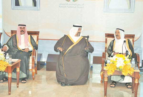 وبين سموه أن «المواطنين استبشروا خيراً بصدور قانون جمع الأسلحة والذخائر والمفرقعات غير المرخصة بعد أن أصبحت تشكل خطراً على حياتهم وشجعت على ارتكاب الجرائم»، مستعرضاً سلسلة من الظواهر السلبية التي تشهدها البلاد «كغيرها من البلدان الأخرى، وهي غريبة على مجتمعنا ومنافية لأخلاقه وعاداته». ولفت إلى أن من أبرز تلك الظواهر «تعاطي المخدرات والمسكرات التي أخذت تفتك بشبابنا وتقضي على مستقبلهم وآمالهم إضافة إلى تزايد جرائم النصب والاحتيال والعنف والسرقة والممارسات غير الأخلاقية والجرائم الإلكترونية»، داعياً إلى «تضافر الجهود للتصدي لها بشكل حازم لتجنب آثارها وتداعياتها على مجتمعنا، وذلك بالتطبيق الصارم للقانون بحق مرتكبيها دون هوادة أو تسامح».الأمير: الأوضاع المأساوية العربية تحتم المزيد من اليقظة