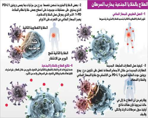 وعمد رايت أخيراً إلى فحص حالته في مستشفى سياتل للأطفال، وتبين له بالصور أنه غير قادر على التخلص من الألم في أضلاعه، وعندما بدأ الأطباء بإعداده لإزالة أجزاء من الحبل الشوكي، أدرك أن المرض عاد إليه، يومها ذكر أن الأطباء سيقولون له إنه انتكس ثانية، وإن أمامه 6 أشهر.المرة الثالثة لم تكن جيدة، وكان يعلم ذلك، وقد رأى ما يكفي من الأطفال المرضى في دار رونالد ماكدونالد، ليعلم أن عودة "اللوكيميا" على هذا النحو تكون عادة مقاومة للمعالجة الكيماوية، ويصعب معها أن يتمكن أحد من البقاء، لكنه تمكن من ذلك. وفي سنة 2013 تم القضاء على إصابته بسرطان الدم الليمفاوي الحاد، عبر نوع جديد من العلاج يتم فيه سحب خلايا من جهاز المناعة لديه تدعى "خلايا تي" في عملية هندسة جينية لتدريب جهاز المناعة لديه لاستهداف خلاياه السرطانية، ثم إعادتها إلى أوردته.ورغم أن رايت كان الشخص الثاني فقط الذي يتلقى هذا العلاج في مستشفى سياتل للأطفال، فإن النتائج السابقة في فيلادلفيا ونيويورك كانت أشبه بأعجوبة، وفي 90 في المئة من المصابين بسرطان الدم الليمفاوي الحاد الذي يعود ويقاوم العقاقير العادية اختفى لديهم السرطان، وتكون فرصة الشفاء في هذه الظروف عادة أقل من 10 في المئة.وتفسر هذه النتائج كيف تمكنت شركة تدعى "جونو ثيرابيوتيكس" من جمع 304 ملايين دولار عندما أصبحت شركة عامة في ديسمبر الماضي، وبعد 16 شهراً على تأسيسها.وتعد المعالجة بواسطة "خلايا تي" النوع الأكثر راديكالية بين عدة أساليب جديدة تعمل على تجنيد نظام المناعة لمهاجمة الخلايا السرطانية، بيد أن فكرة قديمة كانت تبدو عقيمة، وتدعى علاج المناعة، عادت بنتائج مذهلة في السنوات الأربع الماضية، وتشفي عقاقير، تدعى مثبطات نقاط تفتيش تم تسويقها أخيراً، نسبة صغيرة من سرطان الجلد الذي كان ميئوساً منه.وعالجت هذه العقاقير، التي تبيعها شركة "ميرك وبريستول– مايرز سكويب"، أكثر من 60 ألف شخص عبر إزالة كوابح جزيئية تمنع عادة "خلايا تي" من اعتبار السرطان على شكل عدو، وساعدت على إظهار قدرة جهاز المناعة على تدمير السرطان، ولكن هذه التقنية لا تزال في مراحل تجريبية مبكرة، في حين يقول هانس بيشوب، وهو الرئيس التنفيذي للشركة، إن "خلايا تي" هي العقار الشافي. ويجادل بيشوب في أن "العلاج يدخل مرحلة جديدة ستصبح الخلايا فيها عقاقير حية، وتأمل شركات مثل (جونو) الآن باستخدام خلايانا لمعالجة المرض". وفي حالة "خلايا تي" يشير الدليل إلى إمكان علاج بعض السرطانات بقلة من الآثار الجانبية، بدلاً من حمى قوية.وتسعى الشركات إلى إطلاق دراسات جديدة لمعرفة ما إذا كان في وسع "خلايا تي" المهندسة جينياً علاج طائفة واسعة من السرطانات، وحتى في حالة "اللوكيميا"، وهو المرض الذي يصيب نخاع العظام والدم، فإنه من المبكر جداً الإعلان عن أدوية شافية، ويرجع ذلك إلى أن أكثرية المرضى تلقوا العلاج خلال الـ12 شهراً الماضية، وعاد المرض إلى حوالي 25 في المئة منهم، وكان في بعض الأحيان متغيراً بطريقة تجعله محصناً أمام "خلايا تي".يذكر أن "جونو" ليست الشركة الوحيدة التي تتابع فكرة "خلايا تي"، إذ بدأت أكثر من 30 شركة اختبارات إكلينيكية أو خططت للقيام بذلك، بما في ذلك شركة "نوفارتيس" التي تقول إنها قد تتقدم بطلب للموافقة على معالجة منافسة للوكيميا في 2016.وإذا صمدت النتائج المبكرة، فإن اختبارات "خلايا تي" في علاج سرطان الدم قد تفضي إلى واحدة من أسرع الموافقات في تاريخ تطوير العقاقير. ويتضح مدى قوة العلاج بـ"خلايا تي" من خلال عاصفة من الجزيئيات يتم توليدها نتيجة محاربة الخلايا للسرطان، وتوفي ما لا يقل عن 7 مرضى بسبب هذه العاصفة. واستمر الأطباء في فحص رايت للتأكد من عدم إصابته بالحمى، وهي مؤشر على عمل "خلايا تي".وشبه كارل جون، وهو طبيب في جامعة بنسلفانيا، ما يحدث في أجسام المرضى بالقتل المتسلسل أو الجماعي لخلايا السرطان، إذ تتكاثر المليارات من "خلايا تي"، وتحدد وتقضي على عدة كيلوغرامات من الورم.وتجدر الإشارة إلى أن "خلايا تي" العادية مدرب