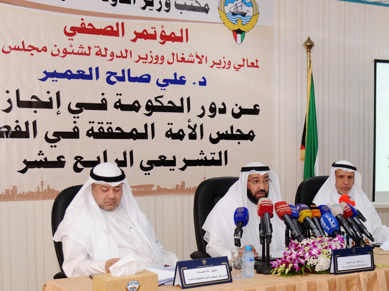 قال الوزير العمير ان مجلس الأمة شهد نقلة نوعية في أساليب التعاون بين السلطتين، وأهمها حرصهما على تطبيق المادة 50 من الدستور، التي تنص على مبدأ فصل السلطات مع تعاونها.