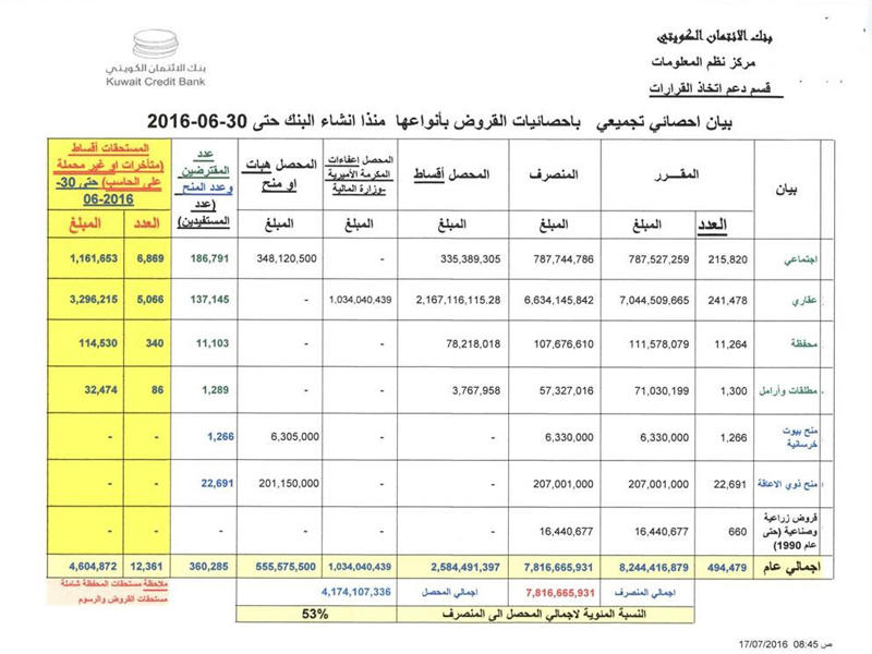 المضف: قروض ومساعدات «الائتمان الكويتي» بلغت نحو 8 مليار دينار منذ إنشائه