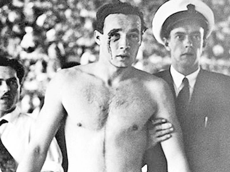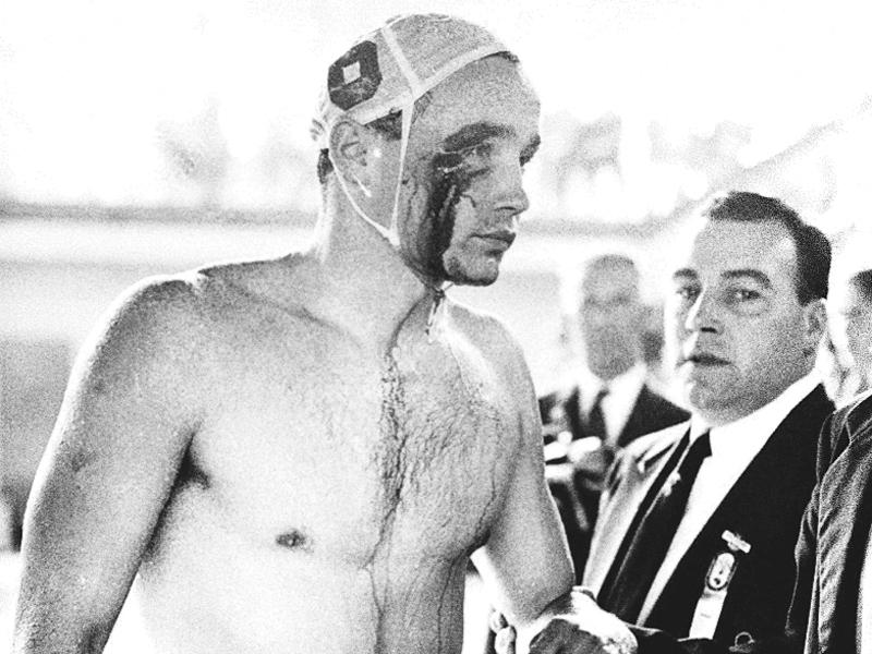 جاءت المقابلة في كرة الماء بين السوفيات والمجريين ضمن دورة ملبورن الاولمبية عام 1956 ساخنة، وكانت معركة مائية في الحوض، إذ لم تفز المجر 4-صفر فقط بل كسبت سمعة ودعاية دوليتين تخطتا البعد الرياضي للمناسبة.وكانت نفوس المجريين مشحونة وتريد الرد بأي وسيلة على "الاخ الاكبر"، الذي غزا بلدهم بنحو 200 الف جندي ودخل عاصمتهم بوادبست في 24 اكتوبر.وحضرت بعثة المجر الى ملبورن من دون ان تنجز استعدادتها، وفي طابور العرض وضع افرادها شريطا اسود على علمهم. وقبل "المنازلة المائية" رفض المجريون مصافحة منافسيهم، لكن الحقيقة المرة في العلاقة المتأزمة بين الطرفين انفجرت لاحقا وكان مسرحها حوض كرة الماء حيث تواجه منتخباهما في مباراة تحولت الى ملاكمة مائية صبغت بالدم.ونشب الاشتباك في الدقيقة 12 من المباراة عندما تقدم المجريون 4-صفر، وكانت المدرجات تغلي بغالبية من مواطنيهم يصرخون "ليعود الروس الى بلادهم"، وترد الاقلية "انكم فاشيون".ويبدو ان حكم المباراة السويدي سام سوكرمان توجس شرا من اللقاء، فطلب من الطبيب المناوب يونغ كيرسي ان يحضر في الحوض لمساعدته حين تدعو الحاجة. وصدقت توقعاته حين وجه فلاديمير بروكوف لكمة "جارحة" الى ارفين زادور، ولما صبغ دمه مياه الحوض هاج الجمهور وصرخ "قتلوا زادور"، علما بانه اصيب بجرح بسيط فوق حاجبه.وتحول اللقاء سريعا الى تبادل للكمات بين تسديد الكرة وتمريرها، ما اضطر الحكم سوكرمان الى ايقاف المباراة قبل انتهائها.وخسر منتخب الاتحاد السوفياتي "النزال"، وقيل ان "المحتل نال جزاءه"، علما بان الحادث طوق خشية ان يترك تداعيات كبيرة تؤثر على مسار الالعاب وتعكر المثل الاولمبية.واحتفظ منتخب المجر باللقب الاولمبي، وقد حققه للمرة الرابعة بعد دورات 1932 و1936 و1952، وكان فوزه من اجل جمهورية تنازع وبلد جريح.