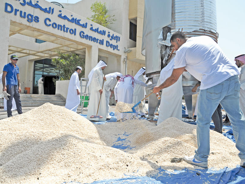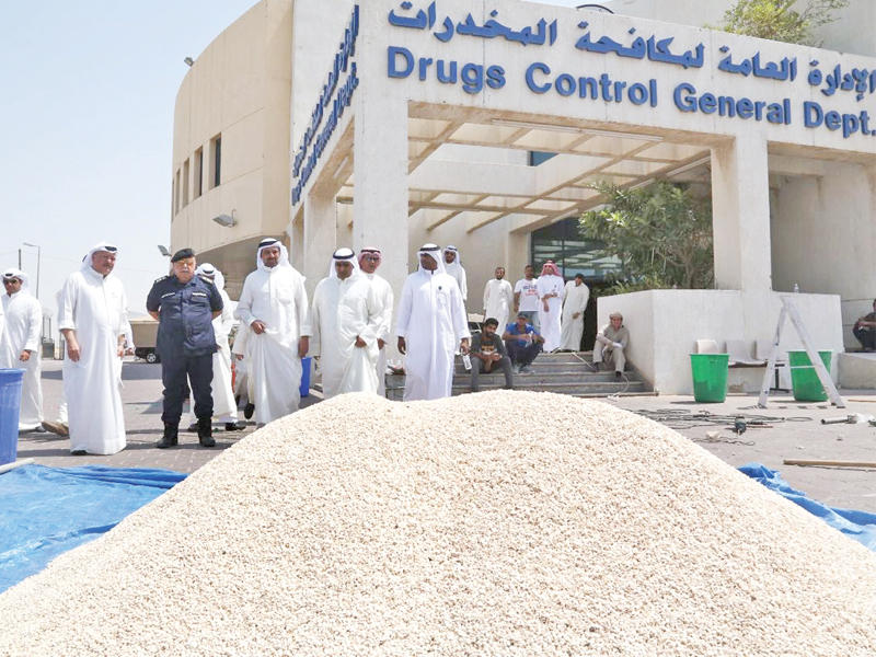 أحبطت وزارة الداخلية أكبر عملية لتهريب المخدرات إلى البلاد، والمتمثلة في محاولة إدخال 10 ملايين حبة «كبتاغون»، تتجاوز قيمتها 25 مليون دينار، لتوزيعها في الكويت، وإعادة تهريب قسم منها إلى دول الخليج.وأشرف وكيل الداخلية الفريق سليمان الفهد، صباح أمس، على تحريز المخدرات (حبوب كبتاغون) التي ضبطت اثناء محاولة دخولها للبلاد قادمة من تركيا ومخبأة بطريقة احترافية داخل بيلر مخصص لخلط المواد الكميائية.وقال الفهد إن الضربات المتتالية التي توجهها الإدارة العامة لمكافحة المخدرات وتجار السموم البيضاء خير دليل على يقظة وجاهزية الأجهزة الأمنية في الحفاظ على أمن وأمان اهل الكويت، وتخليص ابناء المجتمع من هذه الآفة المدمرة.