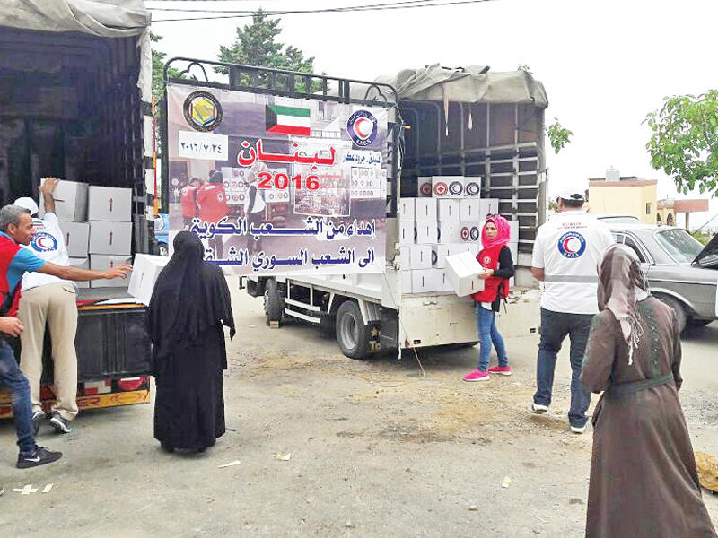 وتقوم جمعية الهلال الأحمر الكويتي بتنفيذ العديد من المشاريع الإنسانية والإغاثية للنازحين السوريين الذين تجاوز عددهم المليون ونصف المليون نازح في مختلف المناطق اللبنانية منذ بداية الأزمة السورية.
