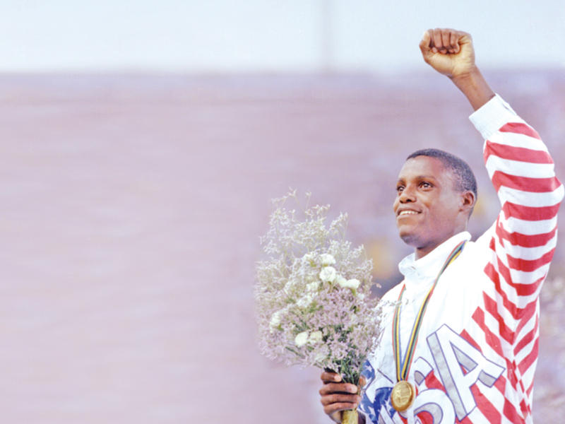 استعرض الاميركي كارل لويس موهبته "حتى الثمالة" في الكوليزيوم واستحق ميدالياته الذهبيات الاربع في دورة لوس انجلس.واستعاد الجميع ذكريات جيسي اوينز (برلين 1936)، اذ حصد لويس مثله 4 ذهبيات في سباقات 100م و200م والتتابع 4 مرات 100م والوثب الطويل، وكانت بداية مسلسل جمعه الميداليات الاولمبية التي بلغت 9 ذهبيات حتى دورة اتلانتا 1996.الفصل الاول من الاستعراض حققه لويس في سباق 100م. ولا تزال ماثلة في الاذهان صورة بول تراكور الذي كان جالسا في الصف الثاني من القسم 27 في المدرجات وبجانبه ابنه (12 عاما). فما ان اجتاز لويس خط النهاية مسجلا 9.99 ثوان متقدما على مواطنه سام غرادي (10.19ث) والكندي بن جونسون (10.22ث)، حتى اخرج تراكور القادم من نيو اورليانز علما اميركيا حمله في حقيبة، وراح يلوح به. وشاهده لويس خلال جولة حول المضمار محييا المتفرجين، فعاد ادراجه واتجه نحوه، واخذ العلم من تراكور وراح يحتفل على طريقته والجميع يشاركه فرحته رقصا.كان لويس يوصف بـ"مايكل جاكسون العاب القوى"، ويعتبر صاحب اسلوب في سباق 100م قريبا من الكمال.ولما انتهى لويس من احتفاله توجه الى حيث يجلس جون كارلوس "الكبير" صاحب برونزية 200م في دورة مكسيكو عام 1968، فارتمى بين ذراعيه. وكارلوس هو احد ابطال "القبضات السود" في "مكسيكو 1968" مناهضة للتمييز العنصري في الولايات المتحدة. وحين شارك في الاولمبياد كان لويس في السابعة من عمره يقيم في نيوجيرسي وتابع سباق كارلوس و"حركته" عبر الشاشة الصغيرة، وحلم بان يخوض الالعاب الاولمبية يوما ويعتلي منصة التتويج.وأصدر لويس بعد ساعات من حصده ذهبية 100م بيانا، ذكر فيه انه حقق 60 في المئة من برنامجه باعتبار هذا السباق "اصعب مسافة والمفاجآت واردة دائما". واوضح "انه كان متأثرا جدا عند الفوز"، مضيفا "انا أؤمن بقدراتي، وطريقة ادائي في الامتار الاخيرة تخولني النجاح. لما بلغت 80م ادركت ان الانتصار في متناولي لكني بقيت حذرا".