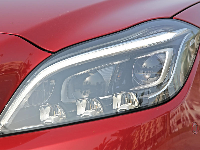 رغم توفير مصابيح نشيطة دائماً طوال النهار، وأنوار جانبية، ومصابيح لإشارات الالتفاف عبر كابل متعدّد الوظائف من الألياف البصرية، فإن سياراة «CLS» مزودة بمصابيح LED الأمامية الجديدة بشريط الحزم الضوئية المتعددة بميزة فاتنة أخرى وهي أنها ترحّب بالسائق أيضاً عن طريق ضوء أزرق مُبهج عند تحرير قفل السيارة.