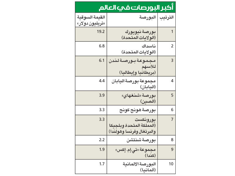 الترتيب | البورصة | القيمة السوقية «تريليون دولار» |