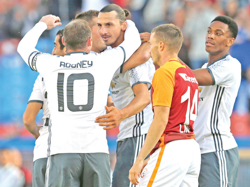 احتاج النجم السويدي زلاتان ابراهيموفيتش إلى أربع دقائق فقط لافتتاح رصيده من الأهداف في صفوف فريقه الجديد مانشستر يونايتد، ليضعه على الطريق الصحيح لتحقيق انتصار سهل على غلطة سراي التركي 5-2، في مباراة ودية اقيمت مساء على ملعب اوليفي في ستوكهولم.وبعد مرور 4 دقائق تلقى إبرا كرة عرضية من الجناح الاكوادوري انطونيو فالنسيا، فطار لها بضربة مقصية رائعة مفتتحا التسجيل.وكان ابراهيموفيتش انتقل الى مانشستر يونايتد قادما من باريس سان جرمان الفرنسي.