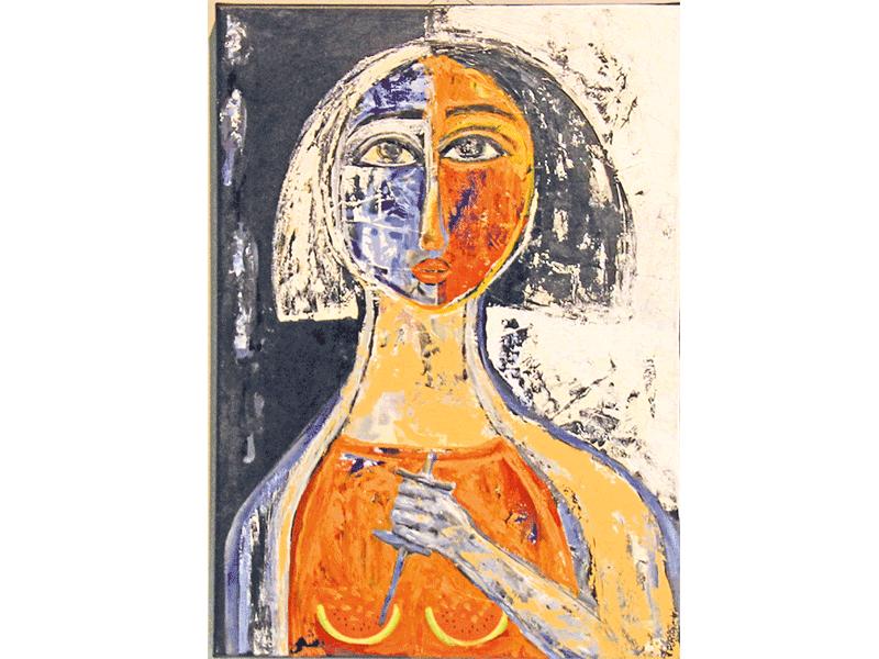 بدوره ألمح الفنان خالد هنو إلى اختيار المازن التجريدية التعبيرية، كأداة فنية للتأكيد على هويتها المصرية، وعشقها لبلدها، ويمكن للرائي ملامسة رموزها المنتقاة بقصدية لافتة، إذ تشكل رؤى جمالية وعقلانية، سواء في اختيارها للوجوه والملابس المصرية، أو الأشكال المختزنة في الذاكرة مثل عروسة المولد والحصان والدف والسمكة والزخارف الإسلامية وغيرها، واستخدامها أحيانًا عنصر «الكولاج» لإضفاء علاقة تشكيلية متنوعة تزيد من ثراء العمل الفني. الفنانة رشا المازن من مواليد الإسكندرية، حاصلة على بكالوريوس فنون جميلة في جامعة الإسكندرية، ولها مشاركات فنية من بينها، معارض فردية وجماعية وتظاهرات تشكيلية، وقد حصدت خلال مشوارها جوائز وشهادات تقدير، ولها مقتنيات في وزارة الثقافة المصرية، وفي مجموعات خاصة في فرنسا، إنكلترا، هولندا، الكويت، الإمارات، قطر، السعودية ومصر.