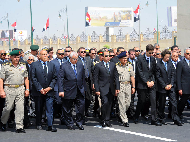 وسط مراسم جنائزية مهيبة، بثتها الفضائيات المصرية، تقدم الرئيس المصري عبدالفتاح السيسي، ورئيس الحكومة، وكبار رجال الدولة، جنازة العالم المصري الكبير الحائز جائزة نوبل في "الكيمياء" أحمد زويل، ووارى المشيعون جثمان الفقيد الثرى في مدافن العائلة بمنطقة 6 أكتوبر. وضع جثمان زويل، الذي وافته المنية الثلاثاء الماضي، بعد صراع طويل مع المرض عن عمر يناهز الـ70 عاماً في الولايات المتحدة الأميركية، على عربة مدفع تجرها الخيول، وتقدمها جنود يحملون أكاليل الزهور والأوسمة التي نالها مدى حياته، وتحولت مراسم دفن زويل إلى جنازة شعبية، شارك فيها الآلاف، والذين حرصوا على مرافقة الجثمان إلى مقر مدينة "زويل للعلوم والتكنولوجيا"، عقب الجنازة العسكرية، والتي انطلق منها الموكب إلى مقابر أسرته في مدينة السادس من أكتوبر.