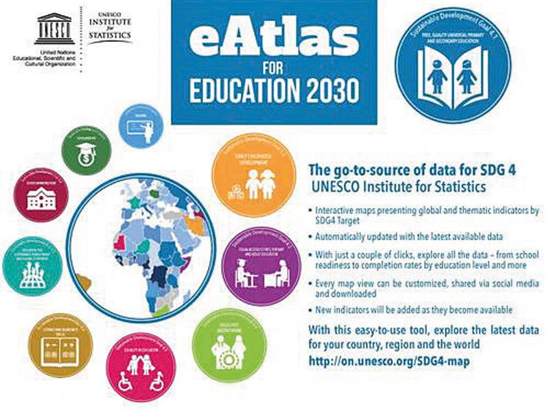 أطلق معهد اليونسكو للإحصاء الأطلس الإلكتروني الجديد بشأن التعليم لعام 2030، وجمع فيه كل البيانات المتوافرة لرصد الهدف الرابع من أهداف التنمية المستدامة والمتعلق بالتعليم.