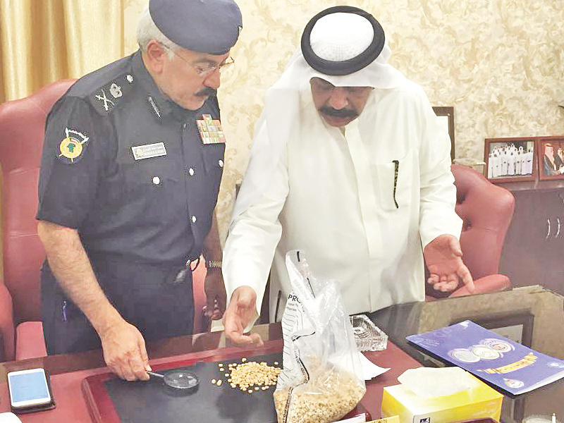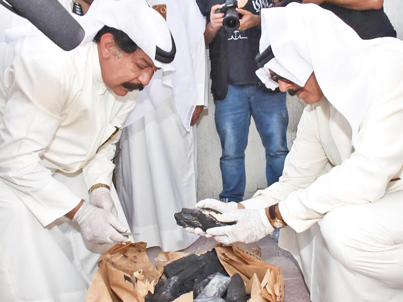 واستمع وزير الداخلية إلى شرح من العقيد الدريعي عن تفاصيل القضية الأخيرة التي تم ضبطها، والتي تتلخص بورود معلومات الى رجال مكافحة المخدرات حول قيام شخصين أحدهما سوري يدعى حميد عابد، والآخر سعودي يدعى عبدالعزيز محمد، بإنشاء شركة استيراد بقصد الاتجار بالمخدرات وجلبها من أوكرانيا.وأوضح الدريعي أنه تم تكثيف التحريات حول المتهمين إلى أن تم ضبطهم، ويجري العمل حاليا على تعقب شركائهم بالخارج وملاحقتهم جنائيا وأمنيا من خلال مكاتب الاتصال الخارجية لمكافحة المخدرات بدول مجلس التعاون وجهاز الإنتربول الدولي، وتكثيف قنوات الاتصال لتحقيق النتائج المرجوة.وأوضح أن المتهمين أقروا واعترفوا بجلبهم كمية كبيرة من الحبوب المخدرة بقصد الاتجار، وأن الشحنة وصلت إلى ميناء الشويخ، وهي عبارة عن حاويتين محملتين بالفحم، وتم إخفاء الحبوب المخدرة بداخلهما بطريقة سرية ومبتكرة.ولفت إلى أن رجال مكافحة المخدرات بالتعاون مع زملائهم في الإدارة العامة للجمارك قاموا بضبط الحاويتين والعمل على تفتيشهما، حيث عثر على أكثر من مليون ونصف المليون حبة من المواد المخدرة (كبتاغون).وتمت إحالة المتهمين والمضبوطات الى جهة الاختصاص لاتخاذ الإجراءات القانونية بحقهم.