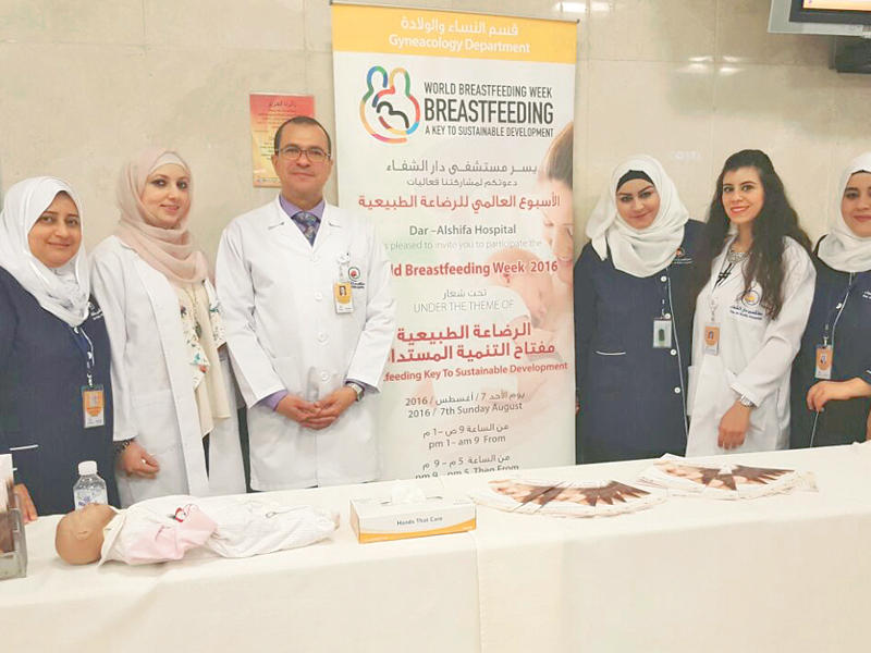 في إطار الاحتفال بالأسبوع العالمي للرضاعة الطبيعية 2016، الذي يقام سنوياً في الفترة ما بين 1 و7 أغسطس في أكثر من 170 دولة، أطلق مستشفى دار الشفاء حملة توعية لتشجيعها، وتحسين تغذية الرضع تحت شعار "الرضاعة الطبيعية مفتاح التنمية المستدامة".وتضمن الاحتفال العديد من الفعاليات المتعلقة بالرضاعة الطبيعية وصحة الأم والطفل، حيث قدمت المرشدات في مستشفى دار الشفاء نصائح وإرشادات بأهميتها وتأثيرها الإيجابي على صحة الأم والطفل والمجتمع، بالإضافة إلى دعم وتشجيع الأم العاملة للتغلب على الصعوبات التي تواجهها، وتم تسليط الضوء على الدور الفعال الذي يلعبه أفراد الأسرة في دعم الرضاعة الطبيعية، فضلا عن تقديم استشارات دوائية وغذائية مهمة لصحة الأم والطفل.الجدير بالذكر أن الرضاعة الطبيعية الخيار الأمثل للطفل، حيث إن حليب الأم آمن دائماً، وطازج وحرارته مناسبة، ويحتوي على توازن مثالي للعناصر الغذائية وسهل الهضم، كما أنه يوفر نموا وتطورا مثاليا للطفل، ويساعد في النمو العقلي والذهني، بالإضافة إلى أنه يقلل احتمالية الإصابة بالإسهال، والتهاب الأذن، والصدر والمعدة، والحساسية والأمراض الأخرى، ويقلل احتمالية الإصابة بأمراض القلب في فترة لاحقة من الحياة، ويوفر مناعة للطفل ضد الأمراض.