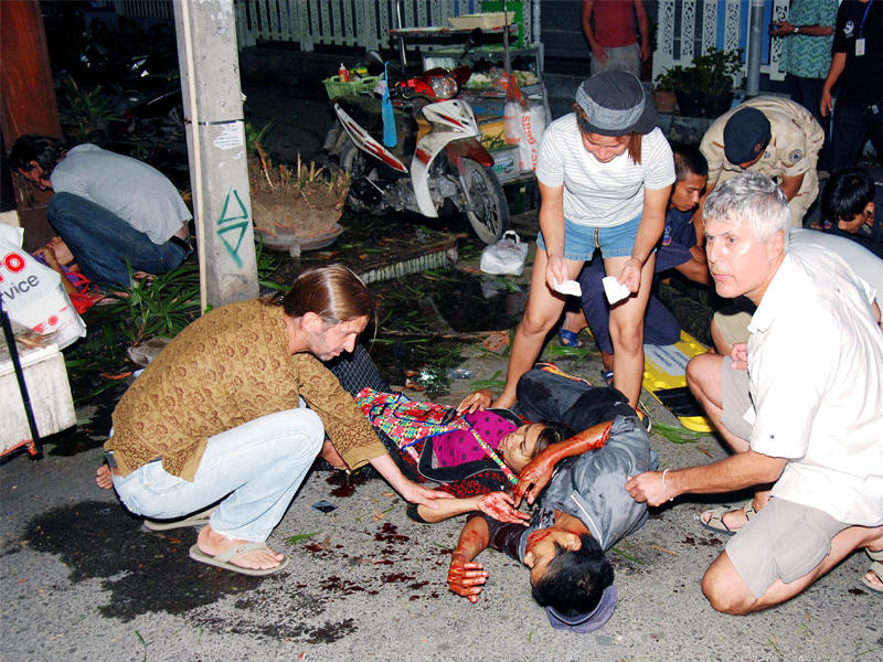 وفي فوكيت، أشهر شواطئ تايلند، لم يسفر التفجير إلا عن إصابة شخص بجروح طفيفة، غير أنه استهدف موقعاً رمزياً هو شاطئ يعتبر من أولى القبلات السياحية في هذا البلد.وفي هوا هين، مساء أمس الأول، انفجرت القنبلتان بفارق ثلاثين دقيقة وعلى مسافة نحو خمسين متراً الواحدة عن الاخرى في منطقة قريبة من الشاطئ تضم عدداً من الحانات والمطاعم التي يرتادها السياح.وقال رئيس الادارة المحلية سوتثيبونغ كلايودوم إن «القنبلتين المخبأتين في آوان لنباتات في الشارع تم تفجيرهما بهاتف نقال» وأعدتا «لتسببا سقوط قتلى»، موضحاً أن «بائعة جوالة تايلندية قتلت وجرح 21 شخصاً بينهم تسعة أجانب».وبين الجرحى الأجانب التسعة هولنديتان إصابتهما طفيفة. وأصيب ثلاثة ألمان وإيطالي بجروح أكثر خطورة وخضعوا لعمليات جراحية في الساق وفي الظهر.هجمات جديدة