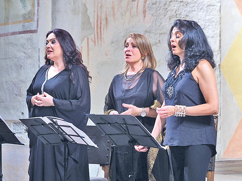 تشهد ليلة 11 سبتمبر 2016 من {مهرجان إيل دو فرانس} حفلة موسيقية تحييها السوبرانو باتريسيا بوفي، السوبرانو فرانسواز ألتان، والكونترالتو فاديا طنب الحاج. ثلاثة أصوات استثنائية، تقدم أغاني من الكتاب المقدس شرقية وغربية، أغاني صوفية، وأخرى مستوحاة من نشيد الأناشيد... هذه الأغاني المنبثقة من التراث الشفهي للبحر الأبيض المتوسط، تشعّ بالضوء نفسه، وترتفع بالمستمع إلى مكامن متسامية.كرّست باتريسيا بوفي وفاديا طنب الحاج، وفرانسواز أتلان، فنهن للسمو بالنفس وعكس الثقافات المنبثقة من البحر الأبيض المتوسط، وتفاعلها على مرّ العصور.خلال أمسية {صوت مقدس}، تأخذ الفنانات الثلاث المستمع إلى رحلة لاكتشاف الأغاني الصوفية وتلك المنبثقة من سفر نشيد الأناشيد، وترانيم دينية مسيحية من الشرق والغرب... ذلك كله وسط أجواء من التعايش والانطلاق نحو الآخر، وأجواء من الصوفية الفرحة وصدق الإيمان، التي تتجاوز العصور والحضور والعقائد والمشاعر. تمتاز فاديا طنب الحاج بأنها مزجت في فنها بين تقنيات الصوت الغربية والشرقية. بداياتها الفنية كانت مع الأخوين رحباني في مجموعة من الأغاني المنفردة لها، ثم سافرت إلى ميونيخ وتابعت دراستها وتخصصت في موسيقى القرون الوسطى. أسست مع شقيقتيها رونزا وأمال طنب الثلاثي TriOrient بهدف تقديم أغانٍ تقليدية لبنانية وفولكلور وموشحات عرفت بها منطقة الشرق الأوسط... ابتداء من 1989 جالت في أنحاء العالم حيث أحيت حفلات، وشاركت في مهرجانات عالمية، وفي مهرجانات بعلبك الدولية في لبنان...