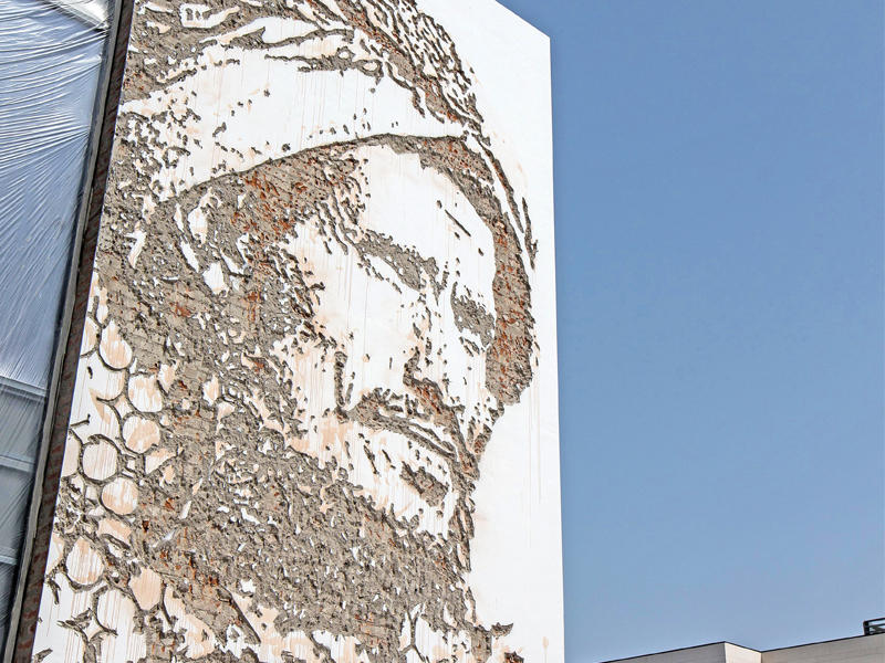 جدارية للفنان البرتغالي فيهلس تجسد وجه بدوي في خمسينيات القرن العشرين والفنان يعتمد في لوحاته فن تكسير الحائط