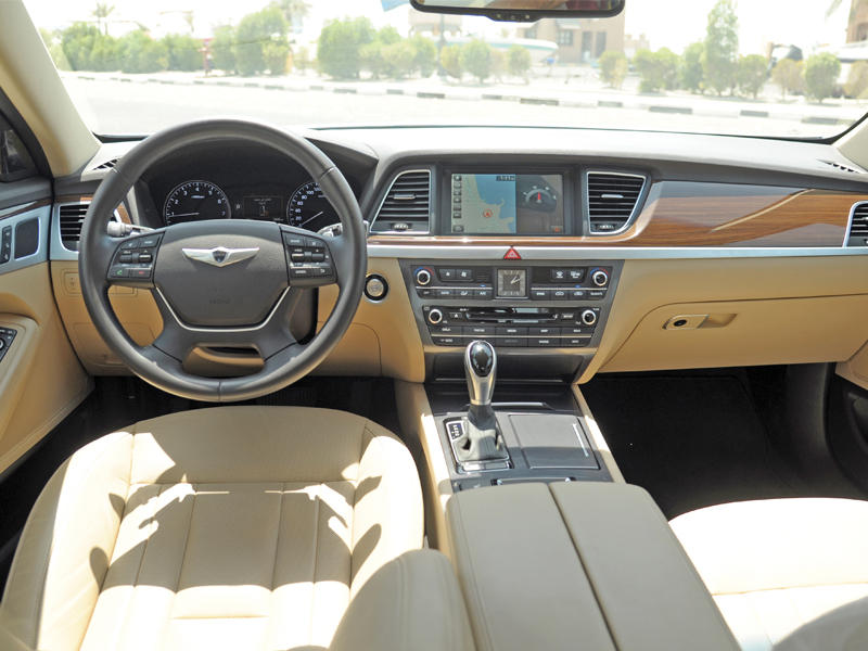 اما الداخلية، فتتميّز مقصورة جينيسيس الجديدة كلياً بتصميمها العصري أيضاً، بحيث تجمع بين الخطوط السائلية المنسابة والشكل الأفقي للمقصورة. وتركزت عملية التصميم بمجملها حول هدف أساسي يسعى لمنح شكل راقٍ، ونتيجة لهذا تم استخدام الخشب الحقيقي والألمنيوم في كل أجزاء المقصورة الداخلية التي قد يلمسها الركّاب.وتتفرّد جينيسيس الجديدة كلياً لتتواجد في موقع مختلف عن منافساتها عبر توفير عدد من التقنيات التي تظهر للمرّة الأولى بفئتها. ومن ضمن هذه المزايا الحديثة هناك نظام العرض العلوي للمعلومات على الزجاج أمام السائق، وميزة الغطاء الذكي لصندوق الأمتعة ونظام الكبح الذاتي في حالات الطوارئ، إضافة إلى ميزة الكشف على النقطة العمياء، وميّزة المراقبة المحيطية حول السيارة. كما يقدم الطراز الجديد نوعين من أنظمة التحكم بالملاحة، مع وجود النظام الذكي للتحكم بالملاحة (SCC) اختيارياً ليكمل النظام التقليدي المركّب في السيارة قياسياً.«شمال الخليج»
