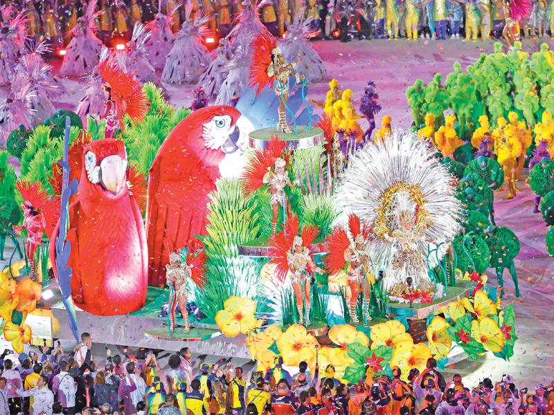 شهد حفل ختام الألعاب الأولى في أميركا اللاتينية كرنفالاً عملاقاً أقيم في ملعب ماراكانا الأسطوري في مدينة ريو دي جانيرو البرازيلية امتزجت فيه السامبا مع الألعاب النارية.واستمر الحفل الذي بدأ عند الساعة 20.00 بالتوقيت المحلي (00ر23 ت غ) نحو ساعتين ونصف الساعة تركزت خلالها الأنظار على الكرسي الخالي من الرئيس بالوكالة ميشال تامر الذي فضّل «قضاء عطلة نهاية الأسبوع في برازيليا»، وحل محله رئيس الجمعية الوطنية (البرلمان) رودريغو مايا.