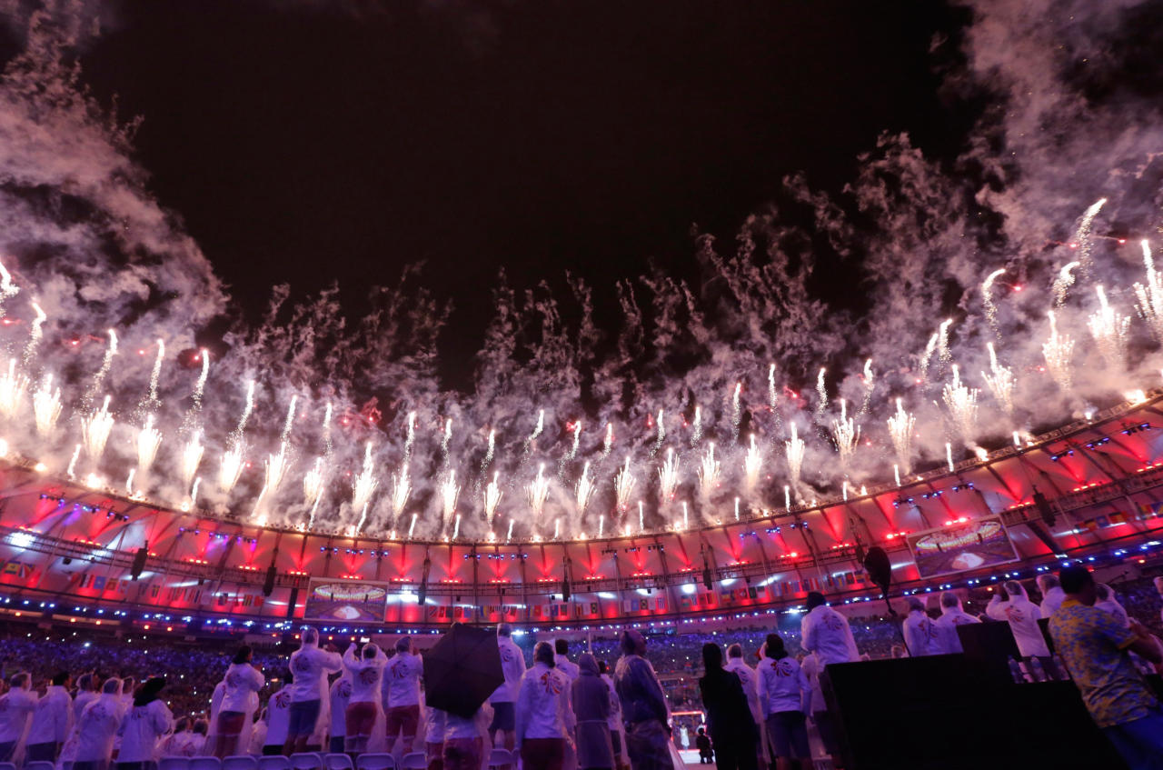 شهد حفل ختام الألعاب الأولى في أميركا اللاتينية كرنفالاً عملاقاً أقيم في ملعب ماراكانا الأسطوري في مدينة ريو دي جانيرو البرازيلية امتزجت فيه السامبا مع الألعاب النارية.