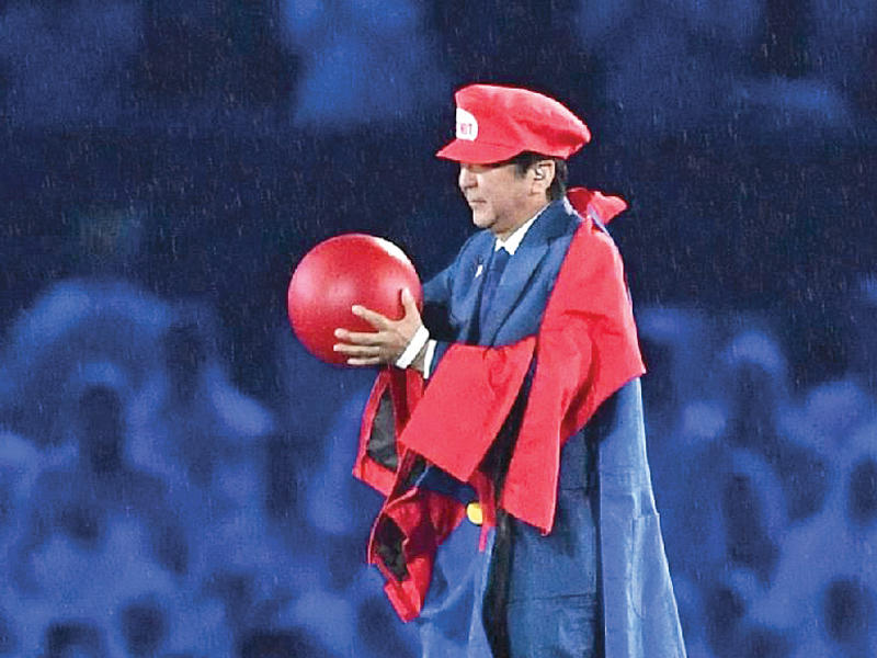 في حفل ختام أولمبياد ريو دي جانيرو 2016 بالبرازيل، فاجأ رئيس الوزراء الياباني شينزو آبي الحضور في استاد ماراكانا، بحضوره المميز، حيث تقمص شخصية «سوبر ماريو» الكرتونية الشهيرة، والتي تتسم بطابع المغامرة.وضمن فقرات الحفل، تسلم رئيس اللجنة الأولمبية الدولية توماس باخ العلم الأولمبي من إدواردو بايس، عمدة ريو دي جانيرو، وسلمه إلى يوريكو كويكي، عمدة مدينة طوكيو، التي تحتضن أولمبياد 2020، ليبدأ تسليط الضوء عليه.