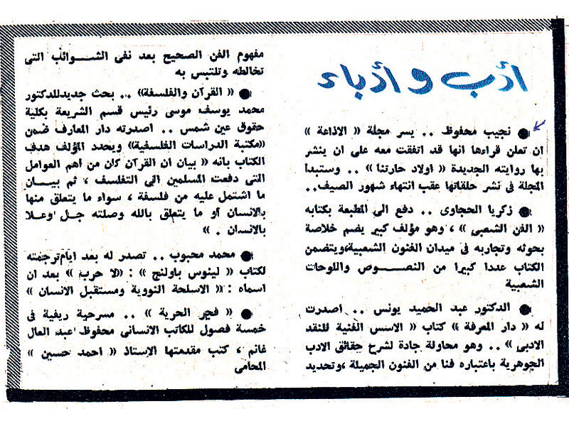 محفوظ لمجلة «العربي» الكويتية: لا حياء في الأدب... كما لا حياء في الدين