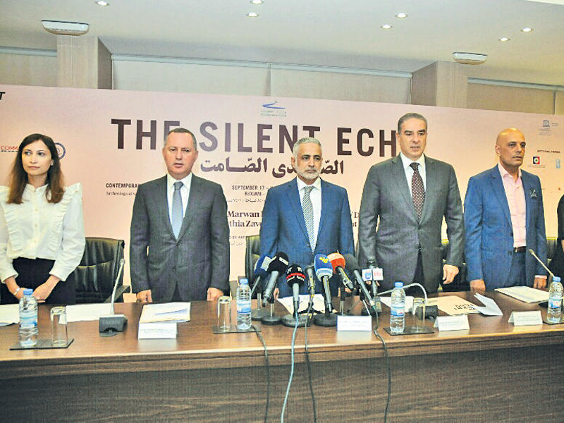 وأكد «دعم منظمة اليونسكو هذا المشروع انطلاقاً من مهمتها التي تقضي بنشر ثقافة السلام وحماية الإرث الثقافي العالمي».من جهتها، وصفت منظمة المعرض كارينا الحلو «صدى الصمت» بالحوار بين التراث والفن المعاصر، مشيرة إلى أن سبعة فنانين عالميين سيشاركون فيه. وقالت: «تأتي فكرة المعرض نتيجة الأخطار التي تتعرض لها الآثار من الحروب والمناخ والنسيان والإهمال والاحتلال»، منوهةً بالجهود «التي أدت إلى جلب فنانين كبار من العالم إلى بعلبك لتحقيق هذا المشروع». بدورها تحدثت المستشارة الفنية للمعرض ديانا ابيلا، فاعتبرت أن «المعرض في حوار مع قلعة بعلبك وتاريخها، لذلك يشكل المشروع تحدياً لنا، لأنه الأول من نوعه ولأنه خارج بيروت رغم المشاكل السياسية التي نعيشها في المنطقة».وشكرت وزارتي الثقافة والسياحة وبلدية بعلبك واليونسكو على دعمها المشروع، إضافة إلى جميع المشاركين في تنفيذه، خصوصاً مصرف لبنان.كذلك عرضت ندى خوري من جمعية «ابيل» أحد منظمي المعرض أنشطة الجمعية من خلال دعمها الفن والفنانين والتغيير نحو الأفضل.