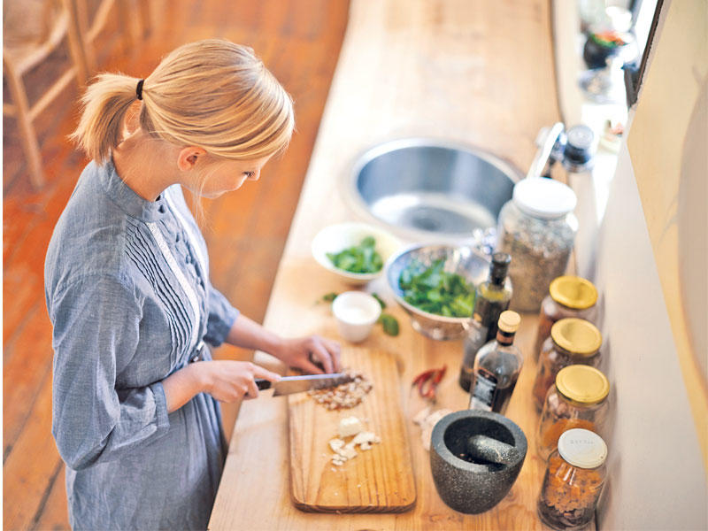 • سخّني موقد غاز أو ضعي مشواة الفحم على حرارة متوسطة.• في غضون ذلك، رشّي كمية سخية من توابل “شيشيمي” على أفخاذ الدجاج من جميع الجهات.• اشوي الدجاج فوق مصدر الحرارة مباشرةً (أو في مقلاة بعيدة عن المشواة بـ8 إنش)، بين 10 و12 دقيقة، وقلّبي القطع إلى أن تصبح شبه صلبة عند الضغط عليها بإصبعك أو بمجحاف. ثم انزعيها عن المشواة. رشّي كمية سخية من بذور السمسم والبصل الأخضر عليها.• معلومات غذائية في كل حصة: 314 سعرة حرارية، 20 غراماً من الدهون، 6 غرامات من الدهون المشبعة، 180 ملغ من الكولسترول، خالية من الكربوهيدرات والسكر، 31 غراماً من البروتينات، 138 ملغ من الصوديوم، خالية من الألياف.4 خلطات صحية بالجوز