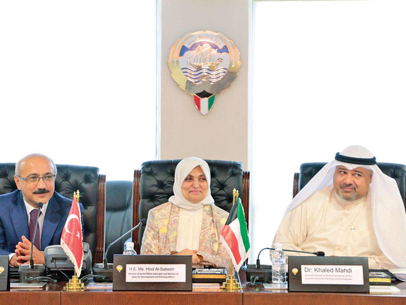 وشدت على أن الخطة الإنمائية الخمسية الثانية في دولة الكويت تشتمل على الكثير من المشاريع الاستراتيجية الكبرى، والتي لا تقل اهمية عن مشروع المطار. من جانبه، أعرب وزير التنمية التركي عن سعادته لترسية مناقصة مشروع المطار الجديد الذي يتسع لأكثر من 25 مليون راكب سنويا على "ليماك" التركية، مشيرا إلى أنه يعد اكبر مشروع تقوم بتنفيذه شركة تجارية على مستوى العالم.وأعرب الوان عن سعادته للوعود التي قطعتها الصبيح بشأن تذليل كل العقبات التي قد تواجه الشركة المنفذة للمشروع، مشيرا إلى أن استمرار هذا النهج وتذليل العقبات وتسهيل الإجراءات ستمكن الشركة من الوفاء بوعدها في انجاز المشروع قبل الفترة المحددة.بدوره، استعرض الأمين العام للمجلس الأعلى للتخطيط والتنمية د. خالد مهدي أهم المشاريع الاستراتيجية، ضمن الخطة الإنمائية الخمسية الثانية لدولة الكويت، ومنها بالإضافة إلى مشروع المطار مشاريع اخرى، كمشروع الجزر الكويتية، والسكك الحديدية، والمترو، وجسر جابر، وميناء مبارك، ومستشفى جابر، ومدينة صباح السالم الجامعية، وغيرها من المشاريع النفطية في شمال الزور. وأشار إلى أن إجمالي عدد المشاريع الاستراتيجية في الخطة الإنمائية يبلغ 32، بتكلفة اجمالية 23.5 مليار دينار تنفذها جهات حكومية أو بنظام الشراكة بين القطاعين العام والخاص.من جانبه، استعرض رئيس المركز الوطني للاقتصاد المعرفي المستشار خالد الحشاش نبذة عن المعرض الوطني لنقل المعرفة عبر المشروعات الصغيرة والمتوسطة، والمزمع اقامته برعاية سامية لسمو امير البلاد خلال فبراير المقبل، موجهاً الدعوة للشركات التركية للمشاركة في فعاليات هذا المعرض الذي ستشارك فيه كبرى الشركات العالمية.