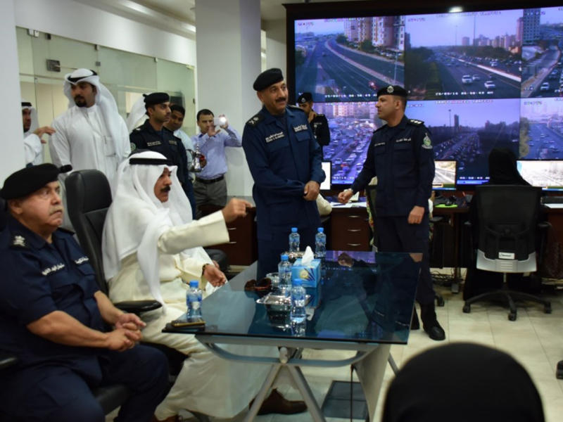 وأصدر توجيهاته بتكثيف الدوريات الراجل والدراجات الآلية لسرعة الوصول للبلاغات ومواقع الحوادث، مبيناً أن هذا أمر مهم للتفاعل مع هذه الأمور.وأكد الخالد على ضرورة الحرص على حسن التنسيق والتعامل مع البلاغات الواردة من إدارة جناح الشرطة بغرفة العمليات لمعرفة الحالة المرورية والأمنية عن كثب وربطها مع كافة القطاعات الأمنية الميدانية المعنية لسرعة التعامل معها.وأوضح أنه سوف يتابع يومياً عملهم ويراجع التقارير الواردة منهم ومقياس نجاحهم هو رضا المواطنين والمقيمين عن أدائهم.جاء ذلك خلال زيارة ميدانية للخالد لمقر الإدارة العامة للمرور مع بداية العام الدراسي الجديد، حيث كان في استقباله لدى وصوله وكيل وزارة الداخلية الفريق سليمان فهد الفهد والمستشار الخاص له الفريق المتقاعد الشيخ أحمد الخليفة ووكيل وزارة الداخلية المساعد لقطاع المرور بالإنابة اللواء فهد الشويع وعدد من قيادات المرور.واطلع الخالد خلال الجولة التي بدأها في غرفة التحكم المركزي على جهود أجهزة وزارة الداخلية استعداداً لاستقبال العام الدراسي الجديد، ومتابعة تنفيذ الإجراءات الأمنية المرورية الشاملة التي أعدتها المؤسسة الأمنية في هذا الشأن والتي تهدف لتأمين انتقال الطلاب والطالبات إلى مدارسهم وتسهيل الحركة المرورية والعمل على تخفيف الازدحامات المرورية.واستمع الشيخ محمد الخالد من وكيل وزارة الداخلية المساعد لشؤون المرور بالإنابة اللواء فهد الشويع إلى تصور كامل عن انتشار دوريات المرور على أرض الواقع، مؤكداً أن هناك تنسيقاً مستمراً وعلى أعلى مستوى بين الإدارة العامة للمرور وبين الإدارة العامة لشرطة النجدة وقطاع الأمن العام على كافة التقاطعات والطرق والمدارس، وأن هذا التعاون البناء يصب في صالح المواطن والمقيم وفي دعم عملية الارتقاء بمستوى الأداء المروري.وأوضح اللواء الشويع أن انتشاراً أمنياً واسعاً نفذ مع ساعات الفجر الأولى صباح اليوم شاركت فيه أكثر من 480 دورية أمن ومرور ونجدة توزعت على كل الشوارع والطرقات الرئيسية وعند المدارس لتأمين انسيابية الحركة المرورية فيها، منوهاً إلى أن هذا الانتشار مستمر على مدار اليوم ويبلغ ذروته مع بدء الدوام الدراسي وعند خروج الطلبة من مدارسهم وكلياتهم. مستشهداً بالأجهزة الحديثة والمتطورة التي تم إدخالها في المجال المروري وتؤدي إلى تعزيز دور رجال المرور في التعامل مع الاختناقات المرورية وتسهم في تسهيل الحركة المرورية.ثم استمع رئيس الوزراء بالإنابة ووزير الداخلية الشيخ محمد الخالد إلى إيجاز من مدير إدارة العمليات بالإدارة العامة للمرور العقيد يوسف الخدة عن أنظمة المراقبة والضبط المروري حيث بين وجود 90 كاميرا للسرعة الثابتة على الطرقات وكذلك 123 كاميرا مثبتة عند الإشارات الضوئية أما كاميرات السرعة المتنقلة فبلغ عددها 18 وبلغ عدد كاميرات المراقبة 79، وموضحاً أن عدد لوحات الرسائل المتغيرة 21 في حين كان عدد التقاطعات المربوطة بغرفة التحكم 231.وقال العقيد الخدة إن الإدارة العامة للمرور تجهز لعدد من المشاريع المستقبلية والتي تتضمن توريد وتركيب 20 لوحة للرسائل المتغيرة وتعمل كذلك على توريد وتركيب عدد 100 كاميرا مراقبة على الطرق.كما قام الخالد بتفقد غرفة العمليات التابعة للإدارة العامة للمرور الخاصة بمتابعة البلاغات ونظام تتبع دوريات المرور، واستمع إلى أهم البلاغات الواردة وآلية التعامل معها.وقد وجه الخالد عبر الموجة اللاسلكية كلمة إلى أبنائه من منتسبي الوزارة قائلاً:«كل عام وأنتم بخير ويعطيكم العافية لخدمة الكويت وأهلها وإن شاء الله يكون عاماً دراسياً موفقاً للجميع وأبلغ تحياتي للجميع». وفي ختام جولته، أكد على أن القيادة السياسية العليا تساند المؤسسة الأمنية مساندة كاملة من أجل تحقيق الأهداف المنوطة بها لدعم الأمن والأمان في البلاد، وأنها تبدي اهتماماً بارزاً بالقضية المرورية وإيجاد حلول جذرية لها.وأعرب الخالد عن تقديره لعطاء رجال المرور مؤكداً على ضرور