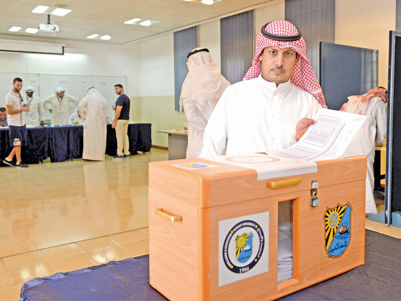 وفي انتخابات جمعية كلية الآداب، الأقل شراسة، شهدت العملية حضورا جيدا منذ الساعات الأولى، وأكد رئيس لجنة الاقتراع طارق دشتي أن التصويت سار وفق اللوائح المنصوص عليها، حيث تم فتح الصناديق في الثامنة صباحاً ليغلق عند الثانية ظهرا، مؤكدا خلو العملية من المشاكل. وأشار دشتي إلى أن عدد المقترعين بلغ 1141 من أصل 1988، في حين وصل عدد المصوتات إلى 1063 طالبة من أصل 3203، موضحا أن الاقبال في الكلية كان يتزايد باستمرار.من جانبها، أكدت رئيسة لجنة انتخابات الطالبات أسيل الشايجي أن اللجنة افتتحت بعد التأكد من وجود جميع الصناديق وممثلي القوائم، مبينة أن عملية التصويت شهدت إقبالاً متزايداً بعد الظهر بعدما كانت ضعيفة خلال الساعات الأولى.وأعربت عن أمنياتها بالتوفيق للقائمة التي تخدم الطلبة وترعى مصالحهم، موضحة أن القوائم المشاركة في كلية الآداب هي «الوسط الديمقراطي»، و«التآلف الطلابي» و«المستقلة».وفي أجواء حماسية تخللتها الهتافات، بدأت الجموع الطلابية يومها الانتخابي، أمس، للمنافسة على جمعية كلية العلوم الاجتماعية، بالتوافد إلى لجان الاقتراع منذ الصباح الباكر، للمشاركة في اختيار الممثل الأنسب لهم، في ظل تنافس قائمتي "الاجتماعية" و"المستقلة". وقد حظيت لجنة الطالبات الساعة 12 ظهرا بإقبال كبير، حيث توافدن للاقتراع، ما أدى إلى ازدحام شديد أمام اللجنة.وقالت رئيسة لجنة اقتراع طالبات "العلوم الاجتماعية" منيرة العلي: "لاحظنا إقبالا كثيفا من قبل الطالبات منذ فتح باب الاقتراع، للمشاركة في هذا العرس الديمقراطي، حيث أدلت كل طالبة بصوتها لاختيار الممثل المناسب لها بالكلية، وبلغت أعداد أصوات الطالبات من بداية التصويت 840 صوتا من أصل 2000 يحق لهن التصويت"، لافتة إلى أنه "خلال إشرافنا على اقتراع الصناديق لم نلمس أي حالة غش في تصوير الأوراق". من جانبه، قال رئيس لجنة الاقتراع في "العلوم الاجتماعية" عمر الشايجي، إن نسبة الإقبال على التصويت كانت عالية جدا، حيث توافدت الجموع الطلابية منذ الصباح الباكر لمقر الاقتراع، الذي حظي بتنظيم إداري تحت إشراف الكلية.ولفت إلى أن عدد الأصوات بلغ حتى الساعة 12 ظهرا 670 صوتا من أصل 1086، مشيرا إلى أنه "من خلال الجهود المبذولة استطعنا توجيه الطلبة في كيفية التصويت، ووجدنا إدراكا أكاديميا من قبلهم، ما أعطانا مؤشرا على مدى الوعي النقابي الذي يمتلكونه".«الطبية»