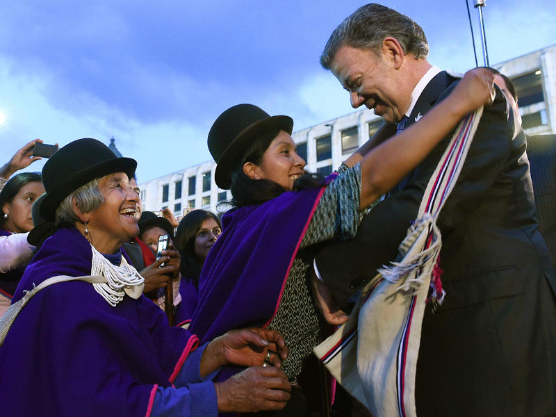 وفي بوغوتا قال الرئيس الكولومبي خوان مانويل سانتوس أن «السلام سيكون شاملاً» في كولومبيا إذا ما توصلت الحكومة إلى اتفاق مع جيش التحرير الوطني، ثاني أكبر حركات التمرد في البلاد بعد حركة فارك التي أبرمت معها بوغوتا اتفاق سلام تاريخياً في 26 سبتمبر لانهاء نزاع أوقع أكثر من 260 ألف قتيل في 52 عاماً.وفاز سانتوس الجمعة بجائزة نوبل للسلام للعام 2016 تكريماً لجهوده في إنهاء خمسة عقود من الحرب في بلاده.وأضاف الرئيس الكولومبي الأثنين «نحن نسعى من نحو ثلاث سنوات إلى مفاوضات مع مقاتلي جيش التحرير الوطني لإنهاء النزاع معهم أيضاً، واليوم لدينا أخبار جيدة الآن فيما نمضي قدماً مع جيش التحرير سيكون سلاماً شاملاً». واعتباراُ من 27 أكتوبر، سيلتزم الطرفان بذل كل الجهود «لخلق بيئة مواتية للسلام»، وهي أنباء مشجعة تأتي بعد ثمانية أيام من الرفض غير المتوقع عبر استفتاء لاتفاق السلام الموقع بين الحكومة و«فارك».وصباح الأثنين، قالت مصادر مقربة من الطرفين لوكالة فرانس برس إن «الإعلان المهم»، المقرر في كراكاس، سيكون «على صلة بالتقدم في مشاورات السلام مع جيش التحرير الوطني».وكان التفاؤل ساد نهاراً مع قيام حركة التمرد باطلاق سراح رهينة مدني وتسليمه إلى اللجنة الدولية للصليب الأحمر في قطاع أروكا على الحدود مع فنزويلا.ووفقاً للكنيسة الكاثوليكية، فإن الرهينة هو نيلسون ألاركون، وكان اختطف قبل ثلاثة أشهر، وهو الرهينة الثالث الذي يفرج عنه خلال أسبوعين من أصل أربعة موجودين لدى جيش التحرير، بحسب التقديرات الرسمية.وحركة «جيش التحرير الوطني» تؤمن بمبادئ تشي غيفارا وهي لا تزال ناشطة بعديدها البالغ 1500 مقاتل.