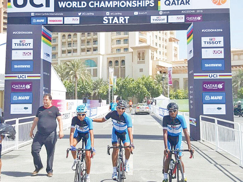 أثنى مقرر لجنة الدراجات الهوائية عبدالله الشمري على مشاركة لاعبي منتخب الكويت في منافسات بطولة العالم للدراجات الهوائية على الطرق المقامة حالياً بالعاصمة القطرية الدوحة، مؤكداً أن اللاعبين الكويتيين حققوا الهدف من المشاركة وظهروا بمستوى مشرف.وقال الشمري في تصريح لـ"الجريدة" ان "المنتخب الكويتي شارك في الفئات الثلاث للبطولة، عبر ثمانية لاعبين هم الدراجون سلمان الصفار وسيد جعفر العلي في فئة الرجال، واللاعبات نجلاء وندي الجريوي، ونور العميري في فئة السيدات، والثلاثي عبدالهادي العجمي وخالد الخليفة وعلي المسلم في فئة الشباب تحت 23 سنة، وظهروا جميعاً بمستوى لافت، وحققوا ارقاما شخصية جيدة عكس مدى تطور رياضة الدراجات في الكويت".