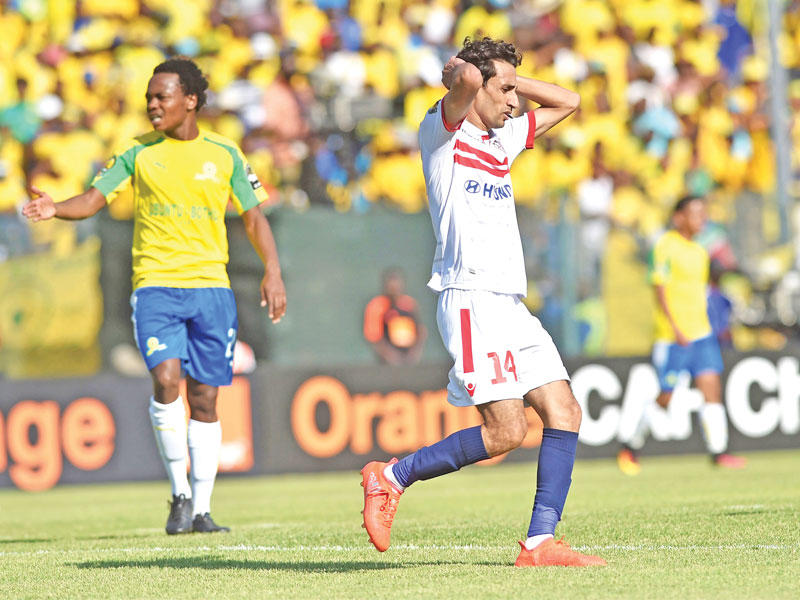 خطا صن داونز الجنوب إفريقي خطوة كبيرة نحو اللقب الأول في تاريخه في مسابقة دوري أبطال إفريقيا لكرة القدم عندما سحق ضيفه الزمالك المصري بثلاثية نظيفة في ذهاب الدور النهائي.