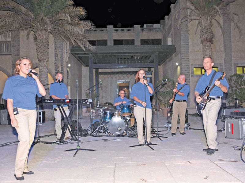قدمت فرقة السلاح الجوي الأميركية «رابتور» عرضا موسيقيا مبهرا في دار الآثار الاسلامية -مركز الامريكاني الثقافي- على مستوى الغناء والعزف على آلات الغيتار والجاز باند او الاورغ، اطرب الحضور الذين تفاعلوا مع أعضاء الفرقة الستة، سواء بترديد الاغاني التي قدموها او من خلال إطلاق صيحات الاعجاب.وقدمت الفرقة، التي تكونت من 4 عازفين، هم مايك وكريستفر وبايان وروكن، ومطربتين هما شيري واولينا، 23 اغنية من اشهر اعمل اساطين الغناء العالمي، تخللها عزف مقطوعات موسيقية تعد الأجمل من حيث أسلوب صياغة الألحان التي راعى فيها مؤلفوها جماليات اللغة العالمية الاولى التي لا يختلف عليها اثنان وجرسها، والثراء غير العادي في مقاماتها وموازينها الموسيقية.