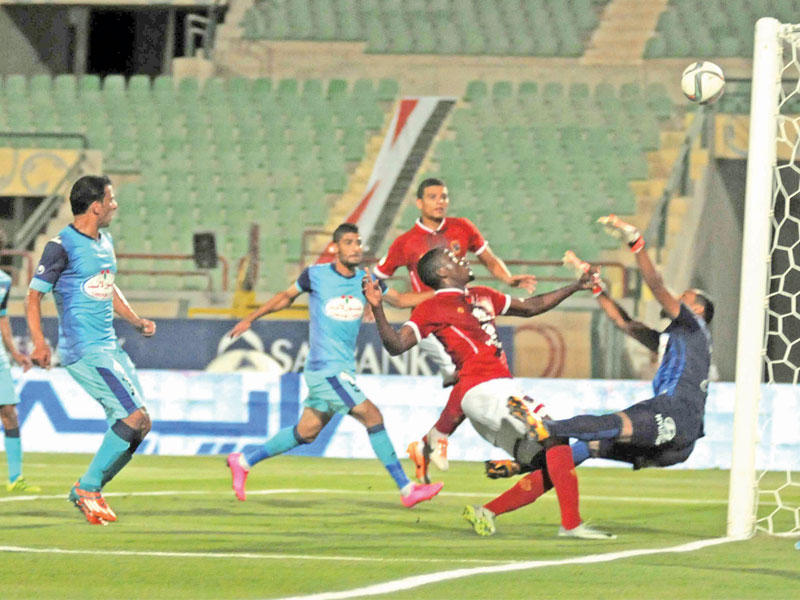 أوقف بتروجيت انتصارات ضيفه الأهلي وحقق أمامه تعادلاً سلبياً في اللقاء الذي جمعهما مساء أمس الأول، في الجولة السادسة للدوري المصري الممتاز.ورفع الفريق الأحمر رصيده إلى 16 نقطة في صدارة الترتيب، في حين وصل بتروجيت إلى النقطة 12 في المركز الثالث.انحصر الأداء في الربع ساعة الأولى، وسط الملعب في ظل إغلاق المساحات الدفاعية في الفريقين مع تسديدة بجوار القائم من مؤمن زكريا وتصويبة من حسام عاشور، وألغى الحكم المساعد أيمن دجيش هدفاً للاعب عمرو السولية لمصلحة الفريق الأحمر بسبب التسلل في الدقيقة 16.ونال جونيور أجاي مهاجم الأهلي إنذاراً بعد التحام عنيف مع حسام حسن مدافع بتروجيت، وأضاع أجاي أقرب فرصة للأهلي في الدقيقة 28 من تمريرة بالرأس من نيدفيد ليهدرها فوق العارضة بغرابة، وواصل الأهلي مسلسل إهدار الفرص لينتهي الشوط الأول بالتعادل.