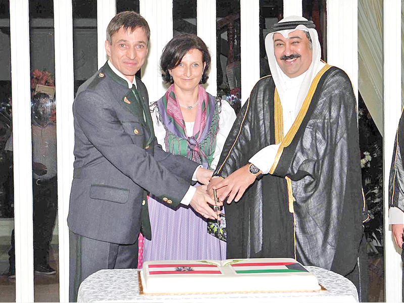وأكد السفير النمساوي لدى البلاد د. زيغورد باخر قوة ومتانة العلاقات النمساوية - الكويتية التي وصفها بالتاريخية والمتميزة على مدار أكثر من 50 عاما هي عمر العلاقات الدبلوماسية بين البلدين الصديقين، موضحا أن هذه العلاقات الودية تقوم على الثقة والاحترام المتبادل، لافتا إلى حرص القيادة السياسية في البلدين الصديقين على تطوير العلاقات وفتح آفاق جديدة للتعاون بينهما.وأشار إلى حرصه على رفع معدلات التبادل التجاري بين البلدين وزيادة حجم الصادرات والواردات بصورة تعود بالنفع على الشعبين الصديقين، لافتا إلى أن الكويت والنمسا دولتان قويتان من الناحية الاقتصادية وتمتلكان امكانات مميزة، وبإمكانهما تكوين قاعدة لتنمية العلاقات الاقتصادية بشكل كبير.ولفت باخر إلى ترتيبات جارية لزيارة وزير الخارجية النمساوي للكويت بالإضافة إلى ترتيبات اخرى للنائب الاول لرئيس مجلس الوزراء وزير الخارجية الشيخ صباح الخالد للنمسا، إلا أنه لم يتحدد موعد بعد للزيارتين، مشيرا إلى أن عدد افراد الجالية النمساوية قليل جدا لا يتجاوز الـ 80 نسمة يعملون في مختلف المجالات.وأوضح باخر أن العيد الوطني النمساوي يحيي ذكرى خروج ما تبقى من القوات الاجنبية من الاراضي النمساوية في 25 أكتوبر 1955 لتستعيد النمسا مكانتها كدولة مستقلة ذات سيادة.