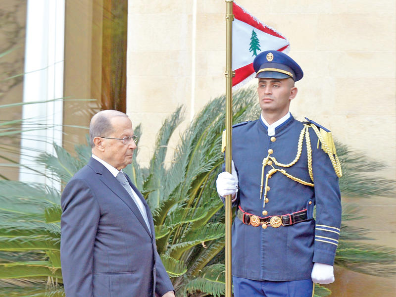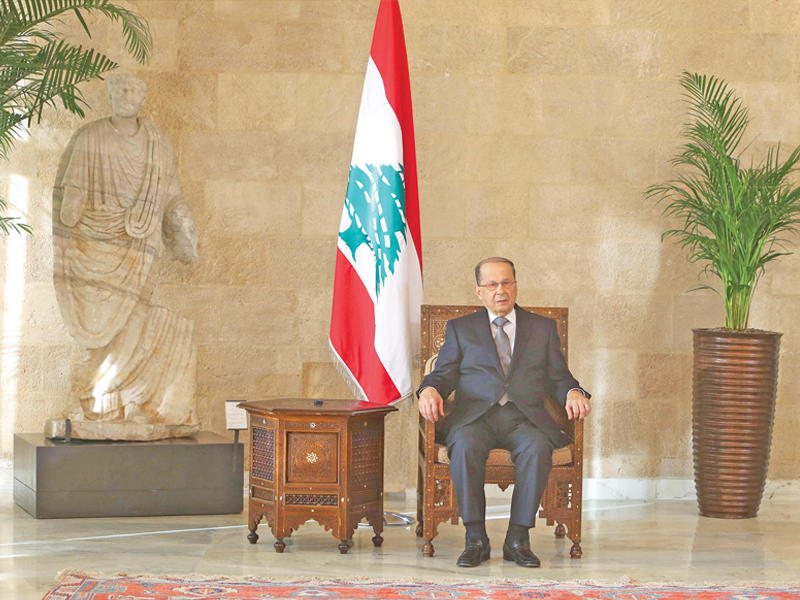 ... وعلى كرسي الرئاسة في القصر الرئاسي ببعبدا أمس (رويترز)