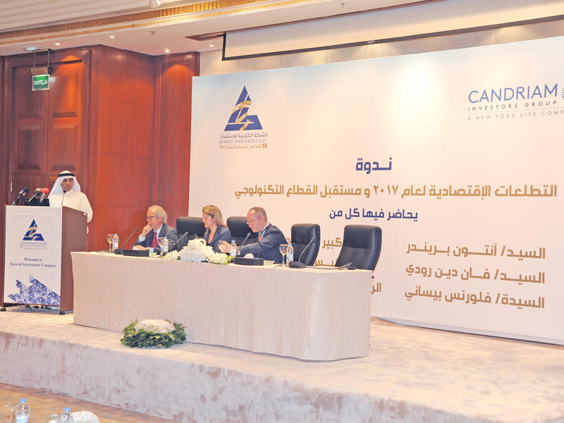 تحرص الشركة الكويتية للاستثمار على إطلاع المستثمرين على آخر التطورات بالأسواق الإقليمية والعالمية والمصحوبة بالتوقعات، التي تمكن المستثمر من اتخاذ قراراته الاستثمارية في مختلف القطاعات، إذ إن الشركة تنتقي أفضل متخصصين يستعرضون خلاصة خبراتهم أمام المستثمرين الكويتيين والخليجيين.وأعقب انتهاء الخبراء من محاضراتهم نقاشات وتساؤلات مختلفة حول الموضوعات المطروحة، التي تناولها خبراء مجموعة «كاندريم» العالمية، وهي من أهم الندوات نظراً إلى توقيتها، الذي يأتي قبيل الانتخابات الأميركية بثمانية أيام وأيضاً قربها من نهاية العام، لاسيما أن المحاضرين تطرقوا إلى عدة محاور، منها أحداث العام الحالي ومدى تأثير انتخاب الرئيس الأميركي الثامن والخمسين على الأوضاع الاقتصادية العالمية، وكذلك انعكاسات التصويت على خروج بريطانيا من الاتحاد الأوروبي، كذلك التطرق إلى نمو الاقتصاد الصيني خلال 2016 على عكس التوقعات، التي أشارت إلى حدوث تراجع. «الكويتية للاستثمار»: لا علاقة لنا بالأمن الغذائي أو القومي... والخصخصة ضرورة