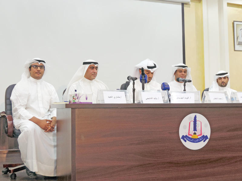 أقامت رابطة الأدباء الكويتيين محاضرة بعنوان "قراءة في كتاب الأجل لكل من خاف ووجل"، شارك فيها كُتّاب العمل وليد الشايجي، ومشاري العبيد، وعبدالعزيز مال الله، وحمد المطر.استهل مقدم المحاضرة الكاتب فهد الهندال كلمته بالحديث عن تجربة الشباب في الكتابة المشتركة، مشيرا إلى أنها تجربة فريدة من نوعها، ربما لم يشهدها الوسط الثقافي في الكويت، قد تكون هناك تجارب ثنائية على مستوى الوطن العربي، وربما هناك تجارب على المستوى العالمي، ربما لم نتعرف إليها، ولكن أن تكون هناك رواية واحدة تكتب بأربعة أقلام، هذا هو الاستثناء.وقرأ الهندال شهادة الروائي إسماعيل فهد إسماعيل عن هذه الرواية، وكان مفادها: "في البدء لم أستوعب فكرة مشاركة أربعه كتاب لإنجاز نص، ظننتها لا تعدو كونها نزوة شبابية محكومة بالمجهول، ما دامت خبرة المشاركة في الكتابة الإبداعية على وجه الخصوص لم تأت بالنتائج المرجوة، ليس في الغالب، وإنّما في الكافّة، ترسُّما لقناعة راسخة مفادها: الفعل الإبداعي السردي وقف على الجهد الفردي". وأضاف: "خلال لقاء لي بهم دفعوا لي مخطوطة رواية كتاب الأجل، متوسمين: حصيلة جهدنا مشتركين؛ وليد الشايجي، عبدالعزيز مال الله، حمد المطر، ومشاري العبيد".