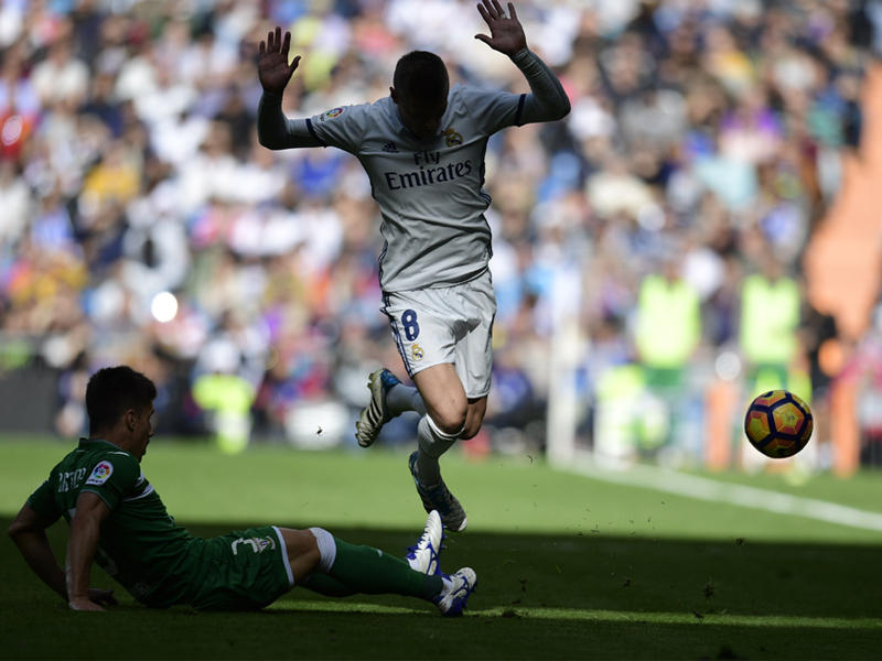 وأضاف موراتا - الذي شارك أساسيا بدلا من كريم بنزيمة المصاب - الهدف الثالث في الدقيقة 76 بعدما تلقى تمريرة من كروس انفرد على إثرها بسيرانتيس ليضع الكرة في الشباك بتسديدة قوية.وخاض كريستيانو رونالدو هداف ريال مدريد مباراة هادئة وسقط كثيرا في مصيدة التسلل لكنه كان قريبا من صنع هدف ثالث لبيل لولا تدخل سيرانتيس الذي أنقذ مرماه من ضربة رأس لجناح ريال مدريد.وتفوق موراتا بهذا الهدف على بيل ورونالدو ليصبح هداف الفريق بثمانية أهداف في كل المسابقات.وبات رصيد ريال مدريد 27 نقطة بفارق خمس نقاط عن برشلونة صاحب المركز الثاني الذي سيخوض مباراة صعبة في وقت لاحق اليوم على أرض اشبيلية.وظل رصيد ليجانيس الوافد الجديد على المسابقة عشر نقاط من 11 مباراة في المركز 17.