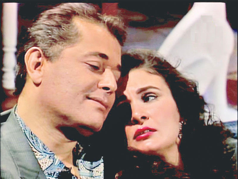 محمود عبدالعزيز ويسرا في مشهد من أحد أعماله