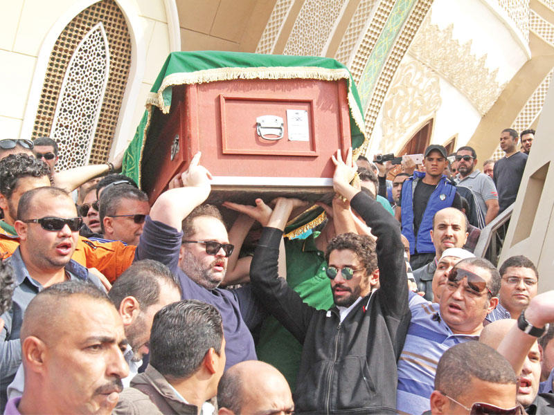 كريم ومحمد نجلا الراحل يحملان جثمانه