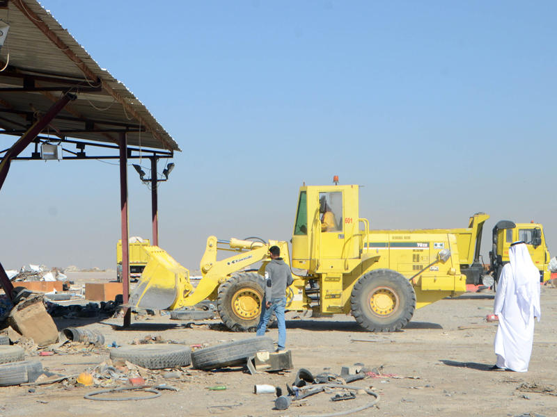 نفذ فرع بلدية محافظة الفروانية حملة لإزالة التعديات على أملاك الدولة بجانب طريق الدائري السابع، بمساندة أمنية من وزارة الداخلية، وبإشراف المدير العام للبلدية أحمد المنفوحي الذي حرص على التواجد في الموقع للاطلاع على إجراءات الازالة.ترأس فريق الازالة نائب المدير العام لشؤون قطاع محافظتي الفروانية والجهراء أحمد الهزيم، وضم الفريق مدير فرع بلدية المحافظة محمد صرخوه، إضافة إلى ادارات السلامة والنظافة، إلى جانب فريق الطوارئ في المحافظة.وقالت إدارة العلاقات العامة ببلدية الكويت إن مساحة مخالفات التعدي على أملاك الدولة التي أزيلت من إحدى الشركات المستغلة لأرض الدولة دون ترخيص من البلدية بلغت (83964.165) مترا مربعا، مشيرة إلى أن إزالة تعديات هذا الموقع الواقع على الدائري السابع تعد من أكبر عمليات الازالة التي قامت بها البلدية لفرض هيبة القانون بحق المتجاوزين.