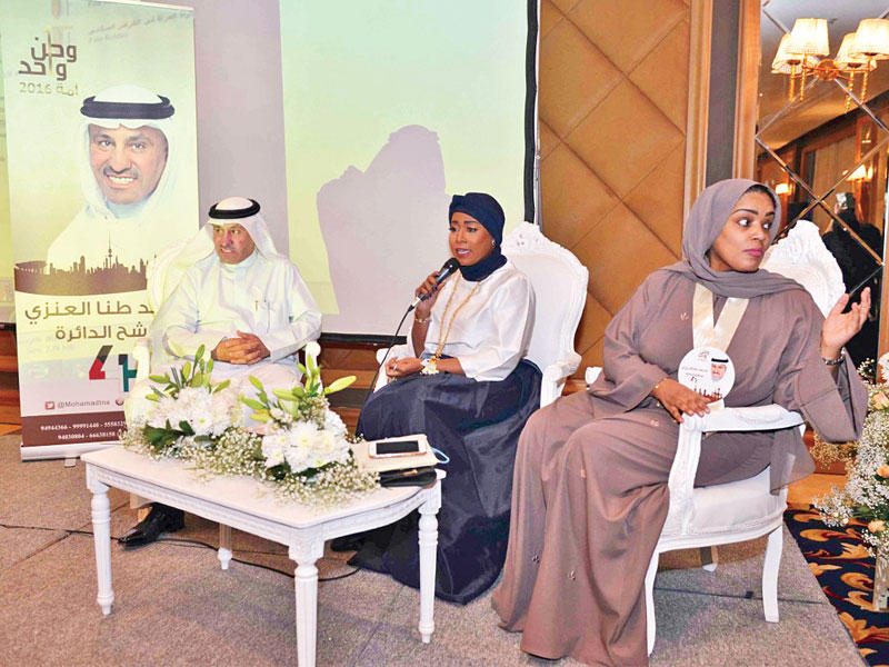 واشار الى انه قدم العديد من الاقتراحات بقوانين والاقتراحات برغبة الخاصة بالمرأة في المجلس المنحل، ضمنها تجنيس ابناء الكويتيات المتزوجات من غير كويتي، ومنحهم الاولوية في التعيينات بعد الكويتيين، ومساواة الكويتية المتزوجة من غير كويتي بالمطلقة والارملة في الحصول على القرض الاسكاني.وأكد طنا انه حرص على الدخول في لجنة شؤون المرأة والاسرة البرلمانية والتي كان مقررا لها، لافتا الى ان اللجنة تمكنت من انجاز عدد من التقارير الخاصة بالمرأة بعد الاستماع الى اراء الجهات المعنية ومؤسسات المجتمع المدني.وبين انه استخدم كافة ادواته الدستورية من أجل حصول المرأة على حقوقها، ومن ضمنها اداة الاستجواب، مشيرا الى انه تناول في محور كامل من استجوابه لوزيرة الشؤون الاجتماعية والعمل وزيرة التخطيط والتنمية هند الصبيح ملف المساعدات الاجتماعية لابناء الكويتيات، مشددا على انه سيكون له موقف حازم اذا تم وقف المساعدات عن الكويتيات المتزوجات من غير كويتي تحت اي ذريعة.وجدد طنا خلال حديثه مع الناخبات رفضه لقرار الحكومة الخاصة بزيادة البنزين وكذلك البديل الحكومي بصرف ٧٥ لترا لكل مواطن معتبره نقطة سوداء في سجل الحكومة، كما اكد رفضه لوثيقة الاصلاح الاقتصادي، التي طالب باسقاطها.وانتقد سياسة الحكومة الاقتصادية التي تستهدف جيب المواطن بذريعة انخفاض اسعار النفط، متسائلا: ماذا فعلت الحكومة للمواطن عندما كان سعر برميل النفط بـ ١٢٠ دولارا؟ وفي ختام حديثه حث طنا الناخبات على حسن الاختيار، مؤكدا ان المسؤولية كبيرة على بنات الكويت، وعليهن التصويت لمن يستطيع الدفاع عن حقوقهن وتحقيق طموحاتهن وتطلعاتهن، معربا عن سعادته بالحضور الحاشد من الناخبات في ندوته الانتخابية.